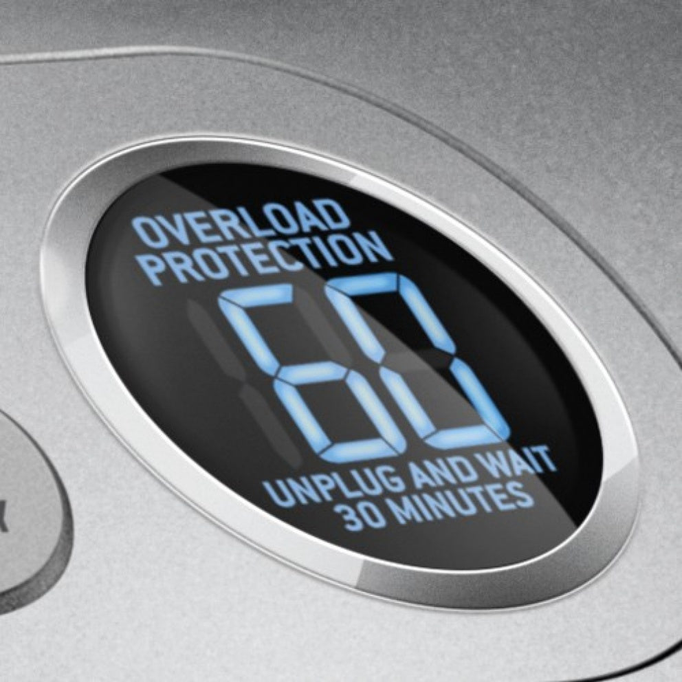 LCD display counts up on speed settings and down for pre-programmed settings for complete control when blending.