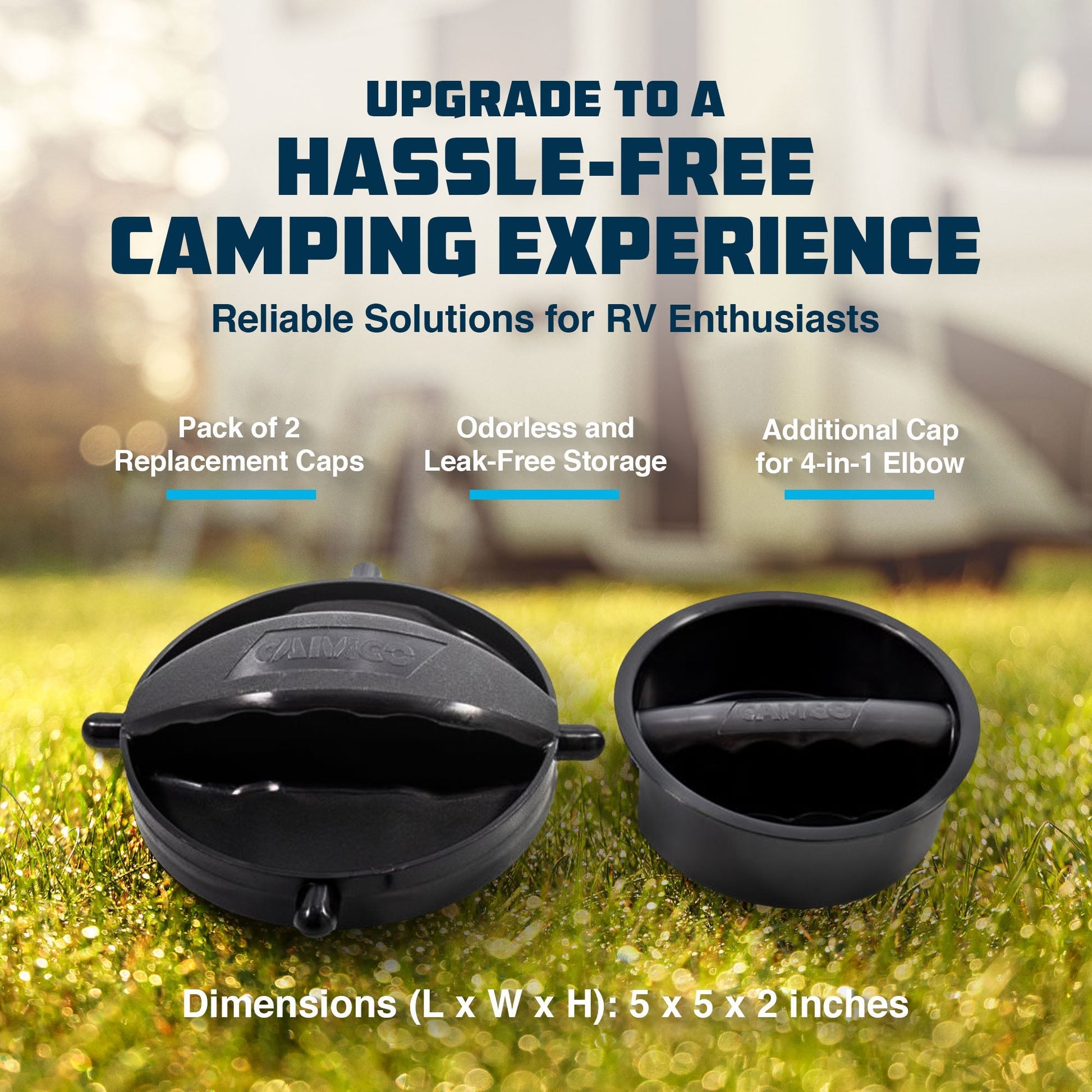 - Pack of 2 replacement caps for RV sewer hoses ideal for odorless and leak-free storage of recreational vehicle sanitation systems