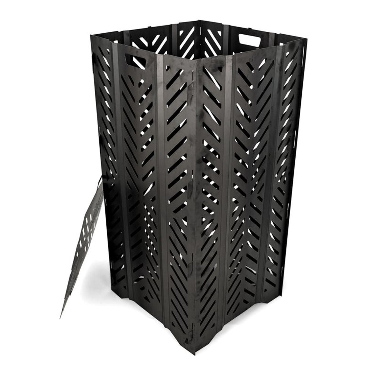 Constructed of heavy-duty SS400 steel, this burn barrel is made to withstand extreme temperatures and burn debris more efficiently. This natural trash and compost incinerator includes both a base and a lid. The lid serves to better control the fire, keeping large embers and ash from escaping. Airflow and ventilation are a priority with the unique venting patterns that provide for more efficient burns. Hand-oiled panels help prevent premature rusting, keeping you company for years to come while you weed your garden and get rid of those autumn leaves. Measuring 22 inches long, 22 inches wide, and 45 inches tall, make this cardboard, compost, and leaf-burner a staple in your back yard and lawn.
