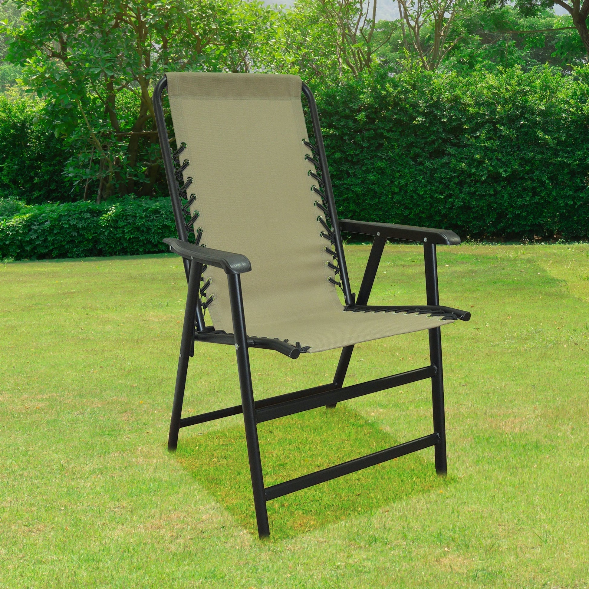 - Relax in ultimate comfort in the cozy suspension folding chair with the double bungee system