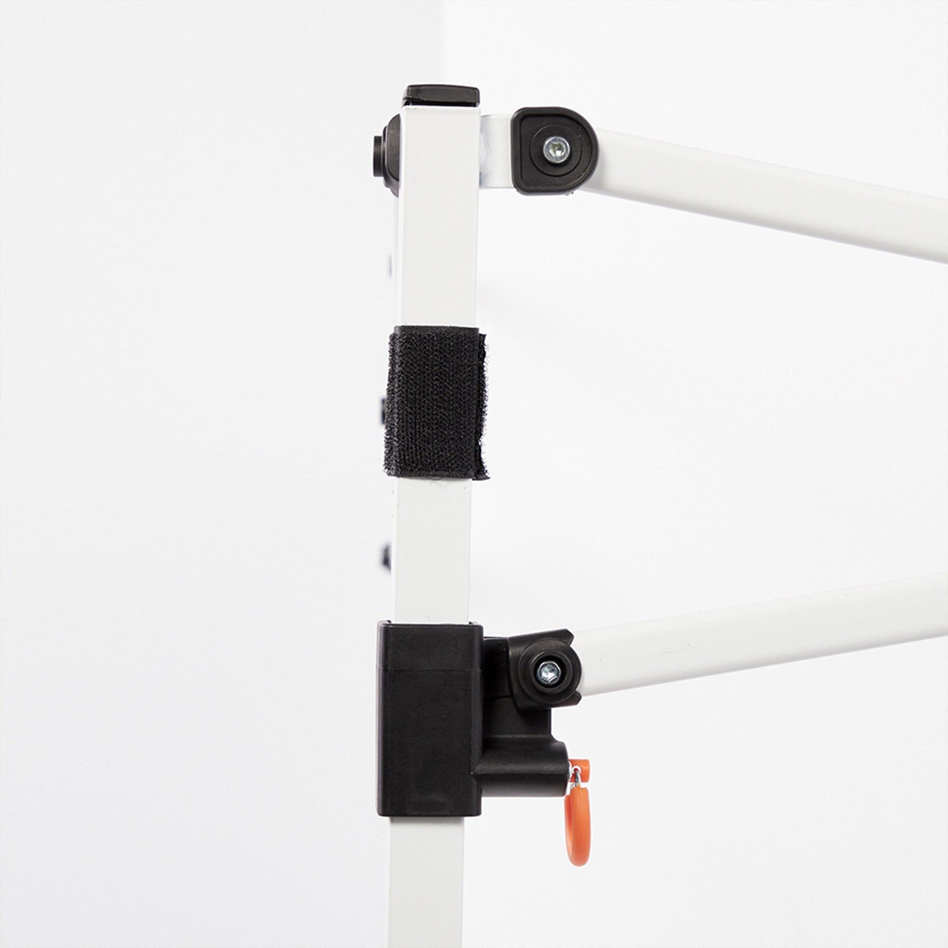 - Sturdy, high grade steel frame with white powder coated finish to prevent rust, corrosion, peeling, or chipping