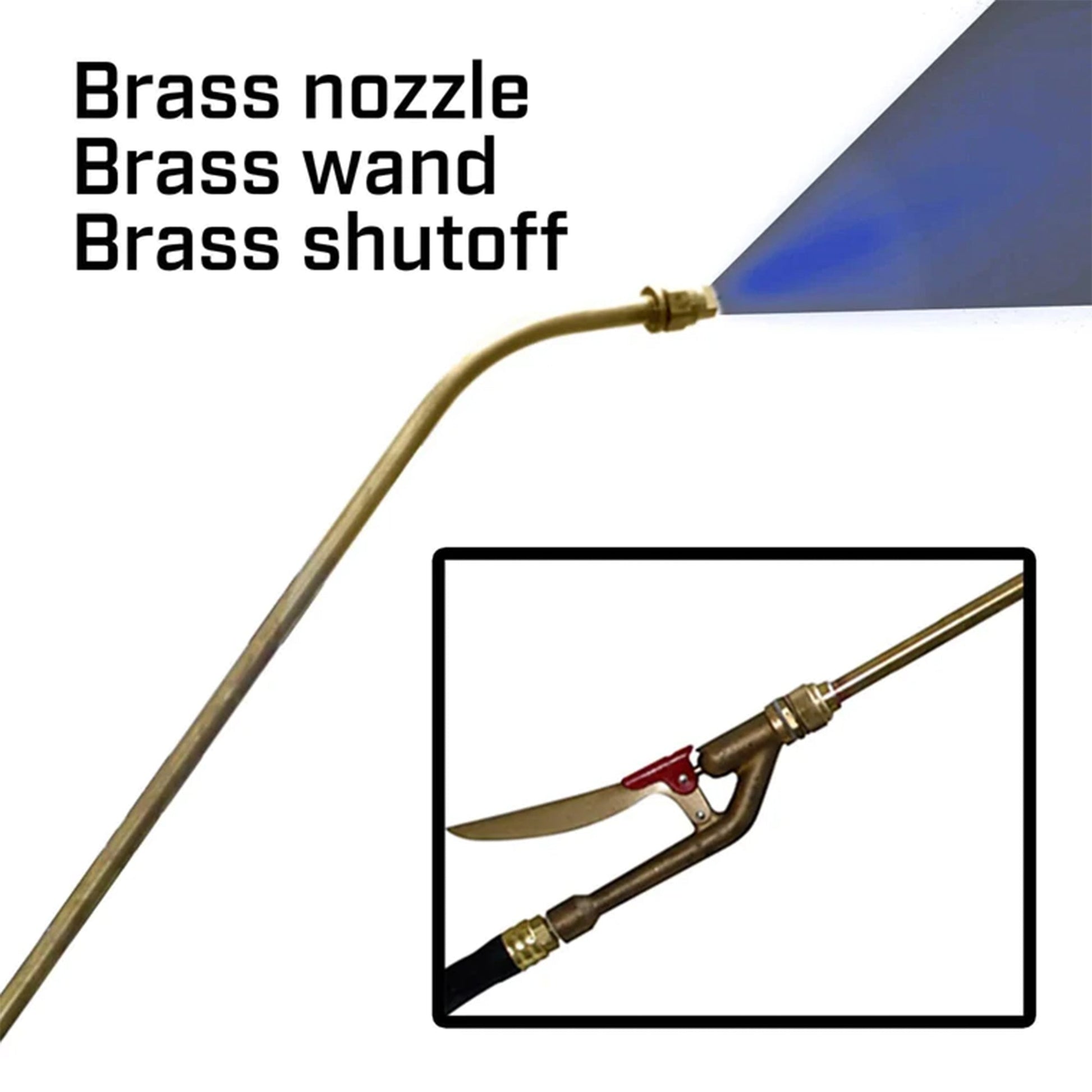 - Brass pump, wand, fan nozzle, and shut-off with lock-on feature offer user-friendly operation