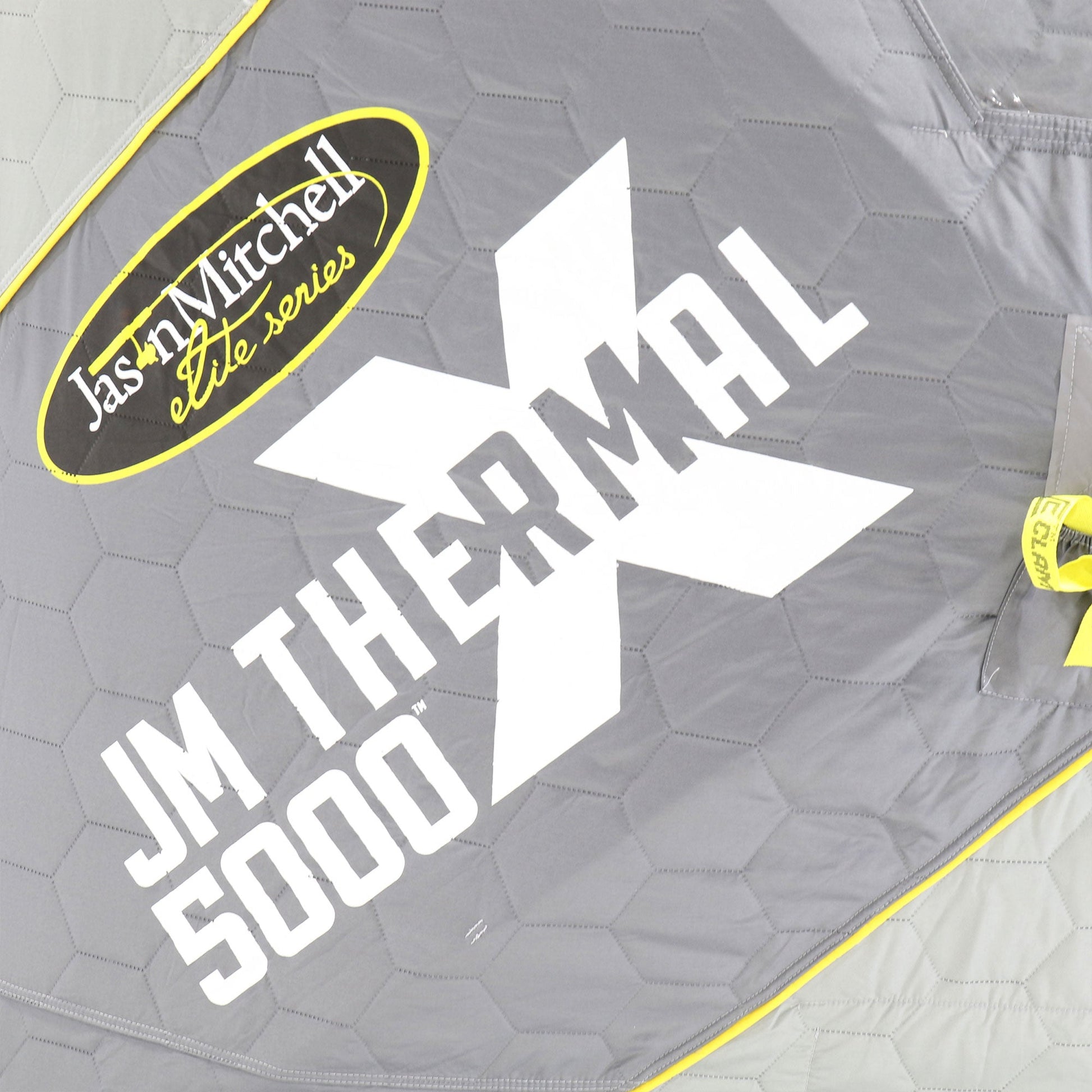 The Jason Mitchell X5000 Thermal Hub Shelter from CLAM is the perfect ice fishing shelter for ice anglers of any skill level!