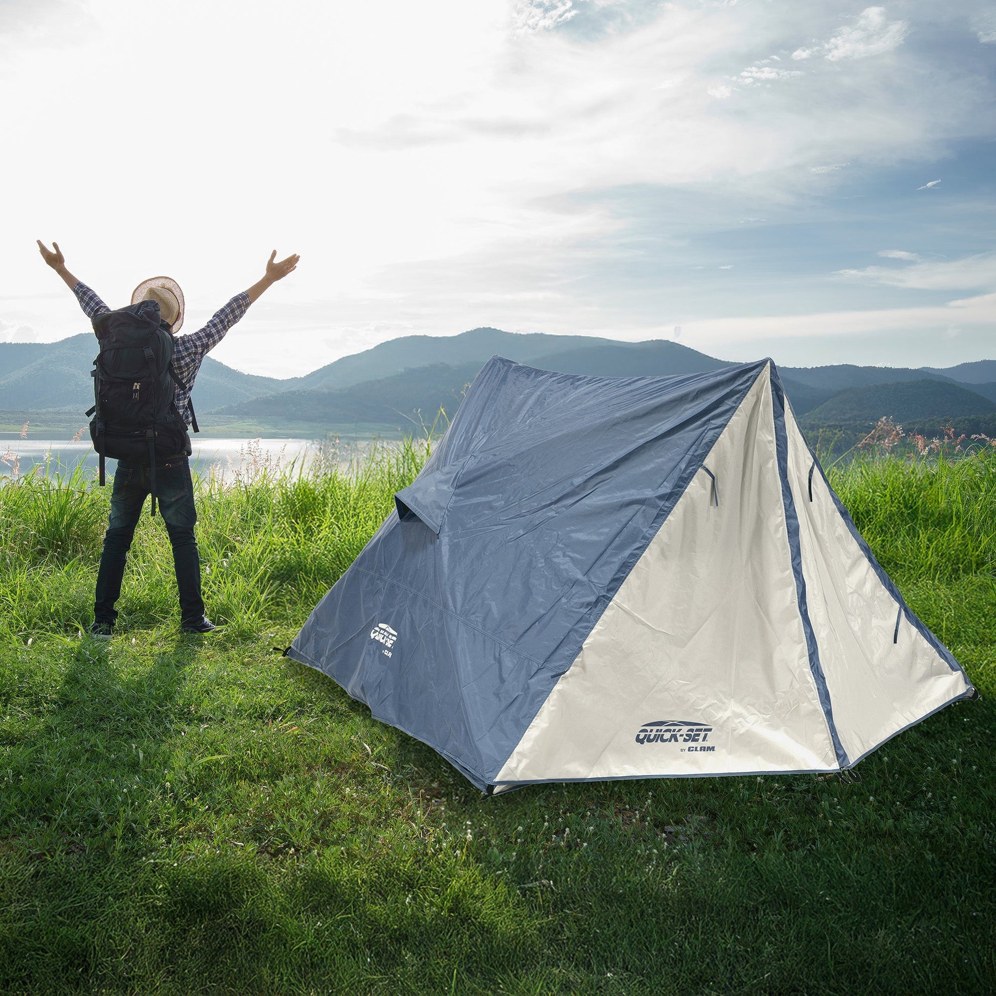 Say goodbye to sunburns and bug bites when you pop up the CLAM Quick-Set Apex A-Frame Camping Tent.