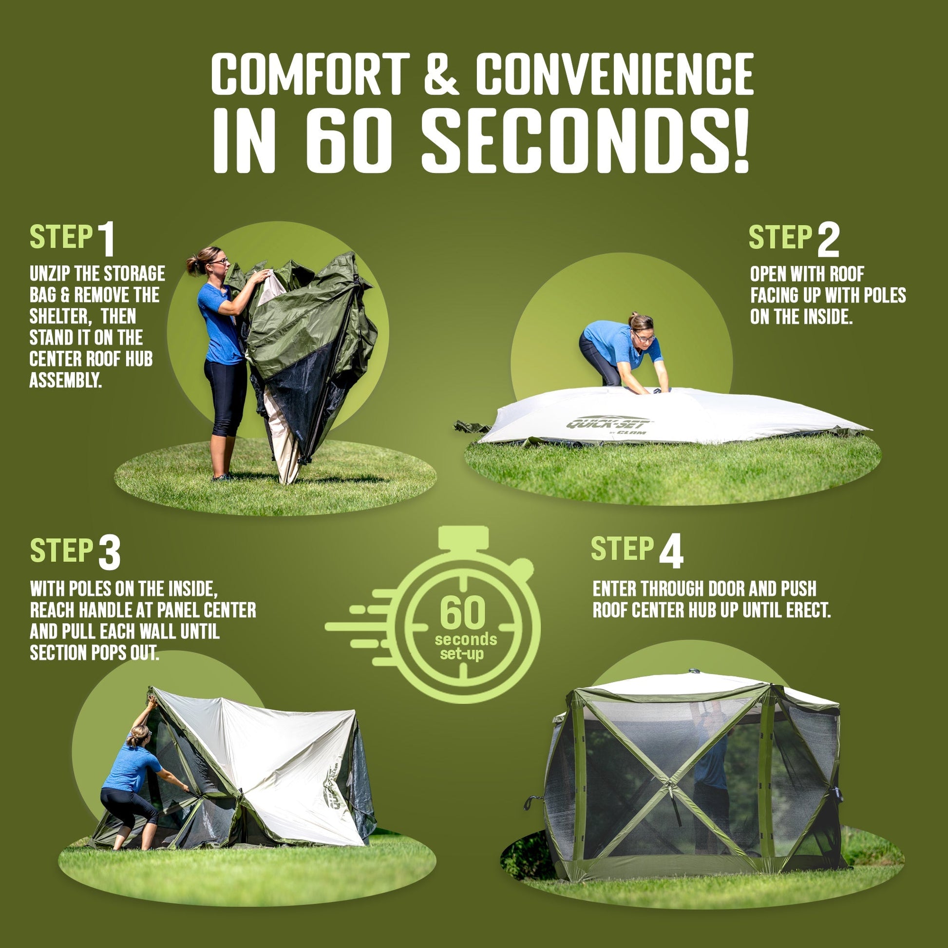 Say goodbye to sunburns and bug bites when you pop up the Quick-Set Pavilion Portable Outdoor Gazebo Canopy Shelter from CLAM.