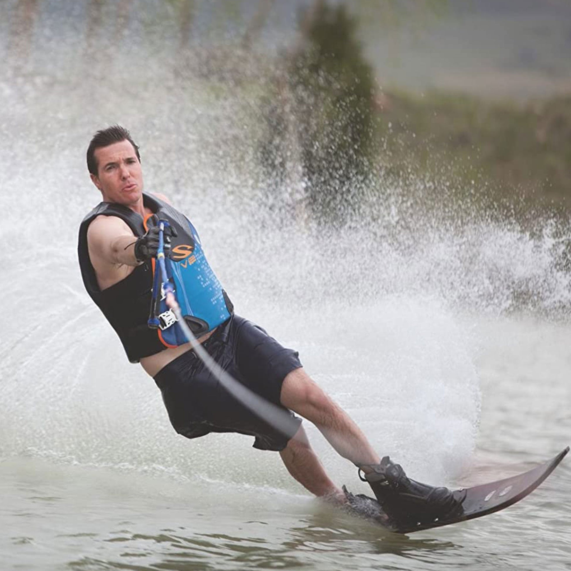 The V2 Series Life Jacket features ride-up tabs in the front that allow you to pull your US Coast Guard-approved jacket back into place when you jump into the water, and 2 adjustable buckled straps keep the vest in place for the entire ride. Neoprene is also tough and coupled with PVC foam inside and 1.5-inch webbed straps, you're sure to catch waves in this jacket season after season. Sleek glide skin slips you through the toughest splashes, so there are no hazards to hold you back while shredding.
