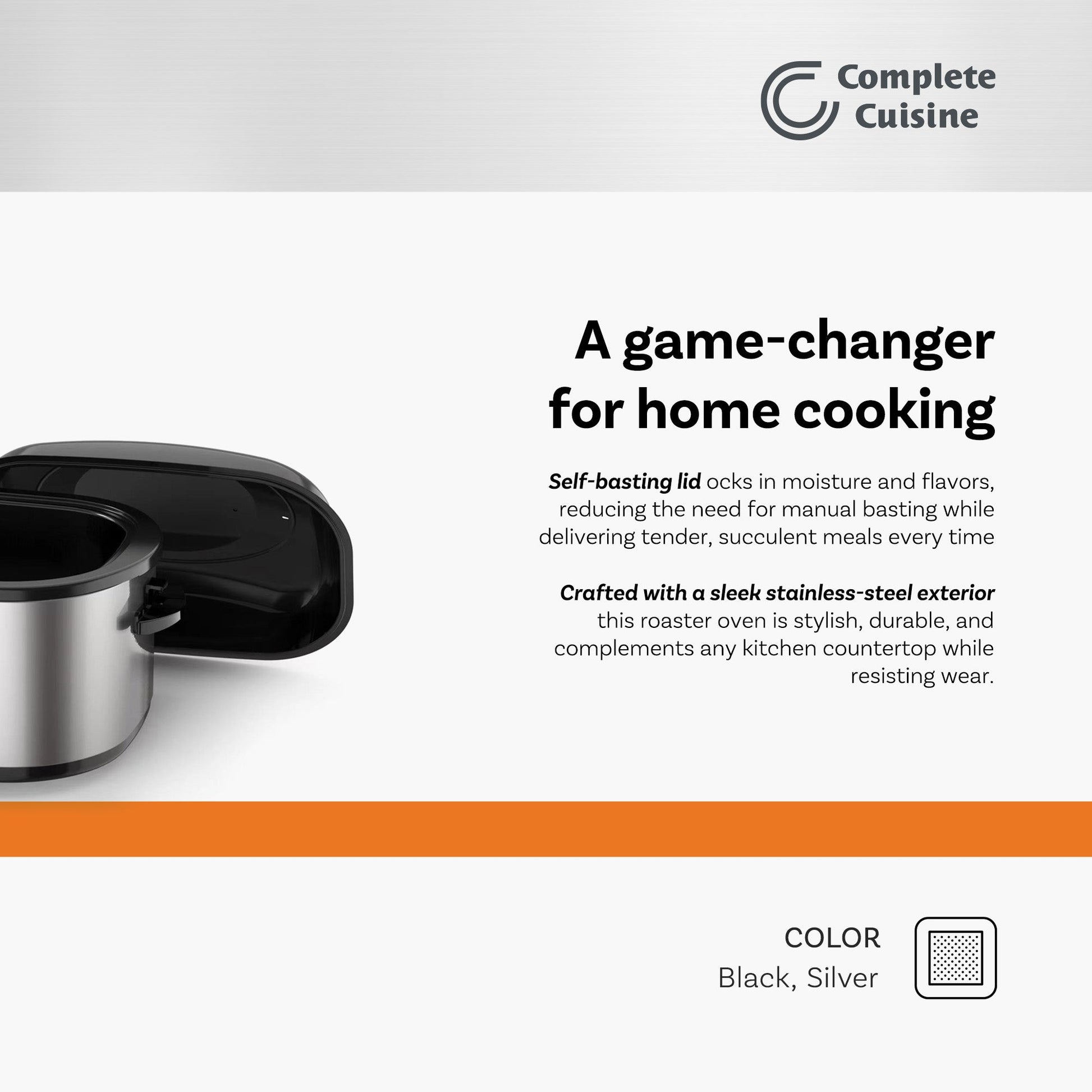 Transform your cooking experience with the Complete Cuisine Electric Roaster Oven with Self-Basting Lid. Designed for convenience and versatility, this roaster oven makes meal preparation effortless, whether you're hosting family gatherings, preparing holiday feasts, or cooking everyday meals. Its spacious 22-quart capacity accommodates large turkeys, roasts, or multiple dishes, saving you time and effort in the kitchen.