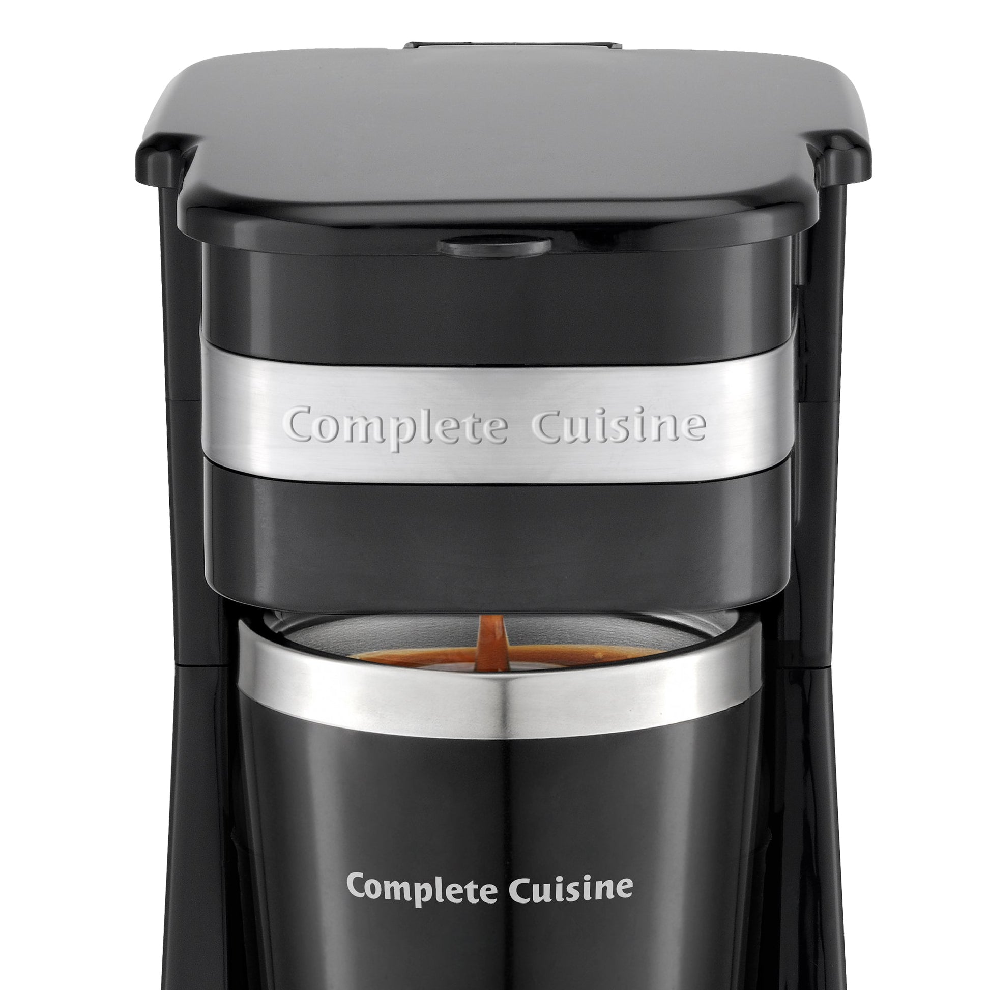 Complete Cuisine Single Coffee Maker Brewer, Stainless Steel Travel Cup, Black