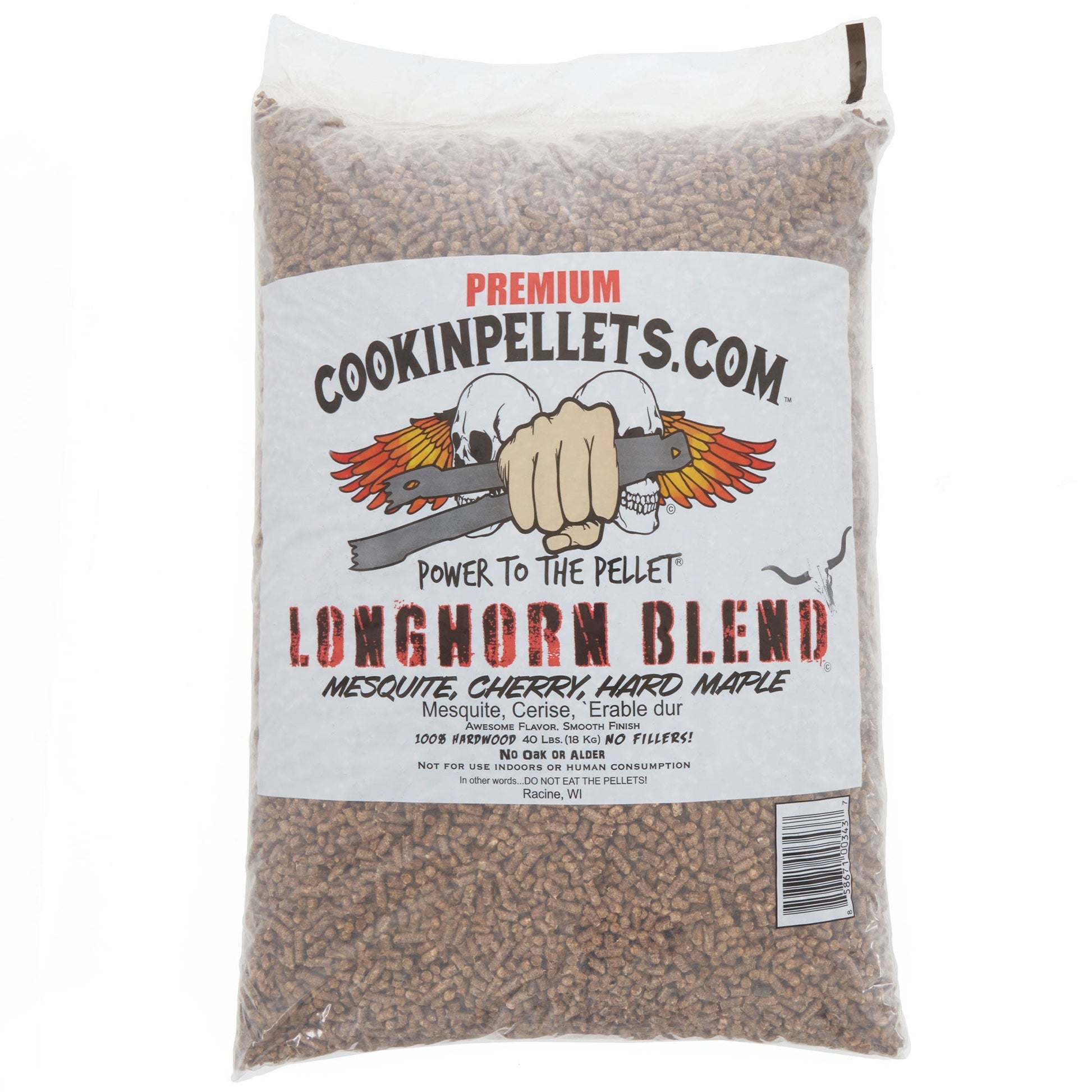 These 40-pound bags of wood pellets provide more than enough fuel to keep your smoker or pellet grill going all season long. Each smoking wood pellet is made of genuine hardwood condensed down and packed with smokey flavor waiting to be released during cooking. These hardwood pellets contain no bark, filler woods, or no flavor oils: just genuine, 100-percent natural hardwood flavor. The Longhorn blend combines hard maple, mesquite, and cherry wood, some of the most popular woods for Southern-style barbeque, making these pellets ideal for getting that down-home flavor you crave.