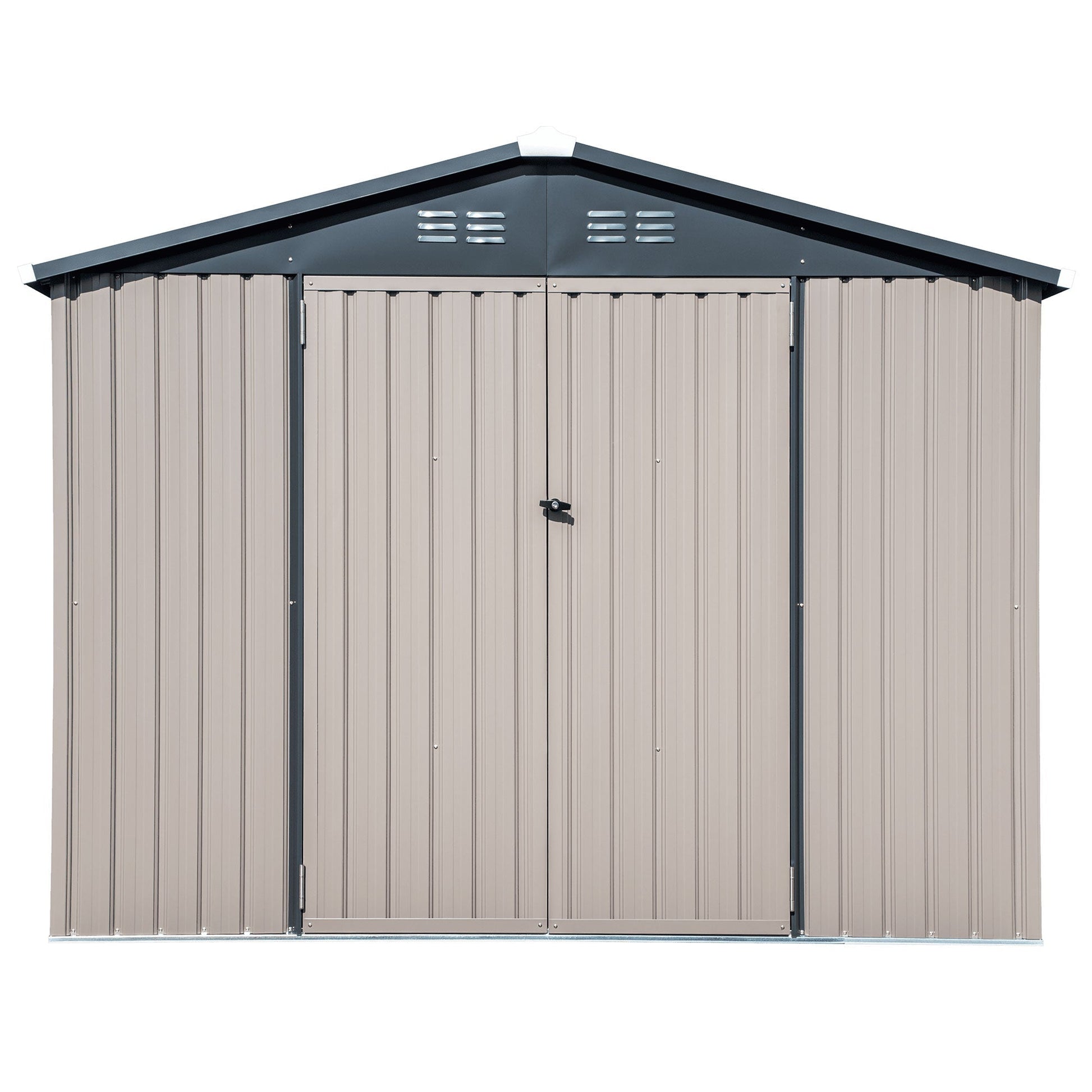 With a 8x6-foot footprint, this compact yet efficient shed is perfect for keeping lawn and garden tools, patio furniture, seasonal items, and more organized and accessible. Made from premium galvanized steel, this shed is specifically crafted for long-lasting durability, offering enhanced aversion to rust, even under harsh weather conditions. The COVER-IT shed features double swing doors for easy entry and exit, with a lockable design to keep your belongings safe. Its sloped roof is designed to channel rainwater away from the doors, avoiding pooling and minimizing wear, so your shed stays in peak condition year after year. Gable vents are integrated to promote air circulation, minimizing humidity inside the shed to keep your stored items fresh, dry, and free from mold or mildew. Assembly is straightforward and user-friendly with pre-cut and pre-drilled components that are ready right out of the box, eliminating the need for additional cutting or drilling. Screw caps are included to cover exposed ends, providing a smooth, finished look while reducing the risk of scratches or cuts. This shed isn’t just practical; it’s designed with safety in mind for a family-friendly environment.