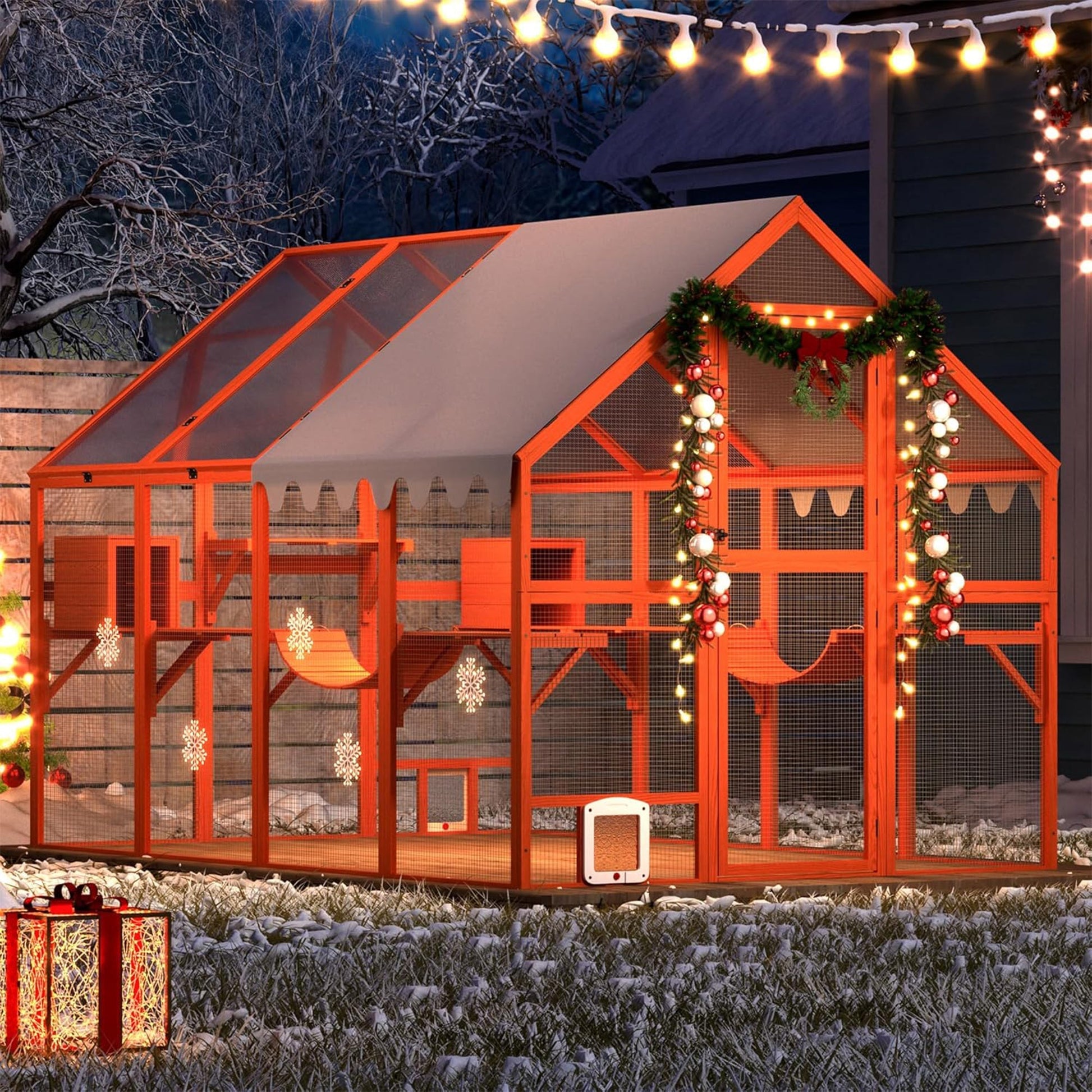 COZIWOW Large Catio Outdoor Cat Enclosure w/Cover, Window, 53.5 sq ft, Orange