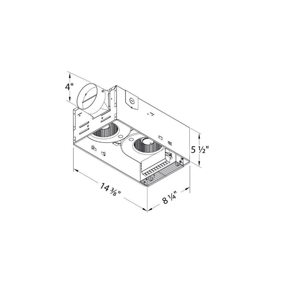The Delta BreezRadiance RAD80LED combines a quiet bath fan, LED light and heater all in one. This fan comes with a built-in thermostat and brushless DC motor for superior reliability and efficiency. This exhaust fan has an Airflow rating of 80 CFM (±10%) and 1.5 Sones at 0.1 static pressure.