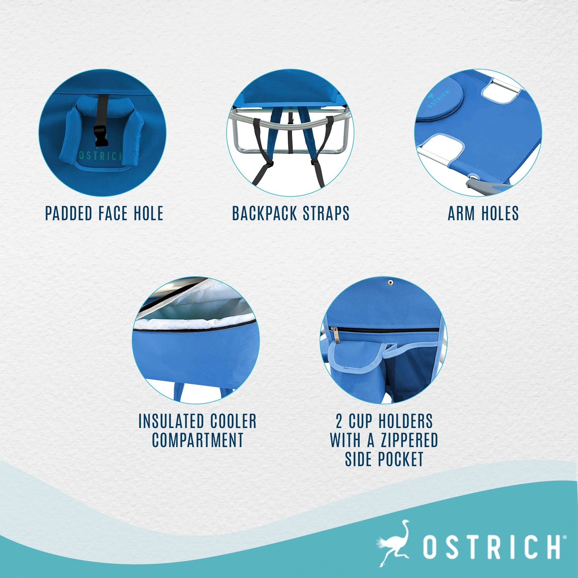 Deltess Ostrich 3 In 1 Portable Chair Cooler Bag & Reclining Lounger, Royal Blue