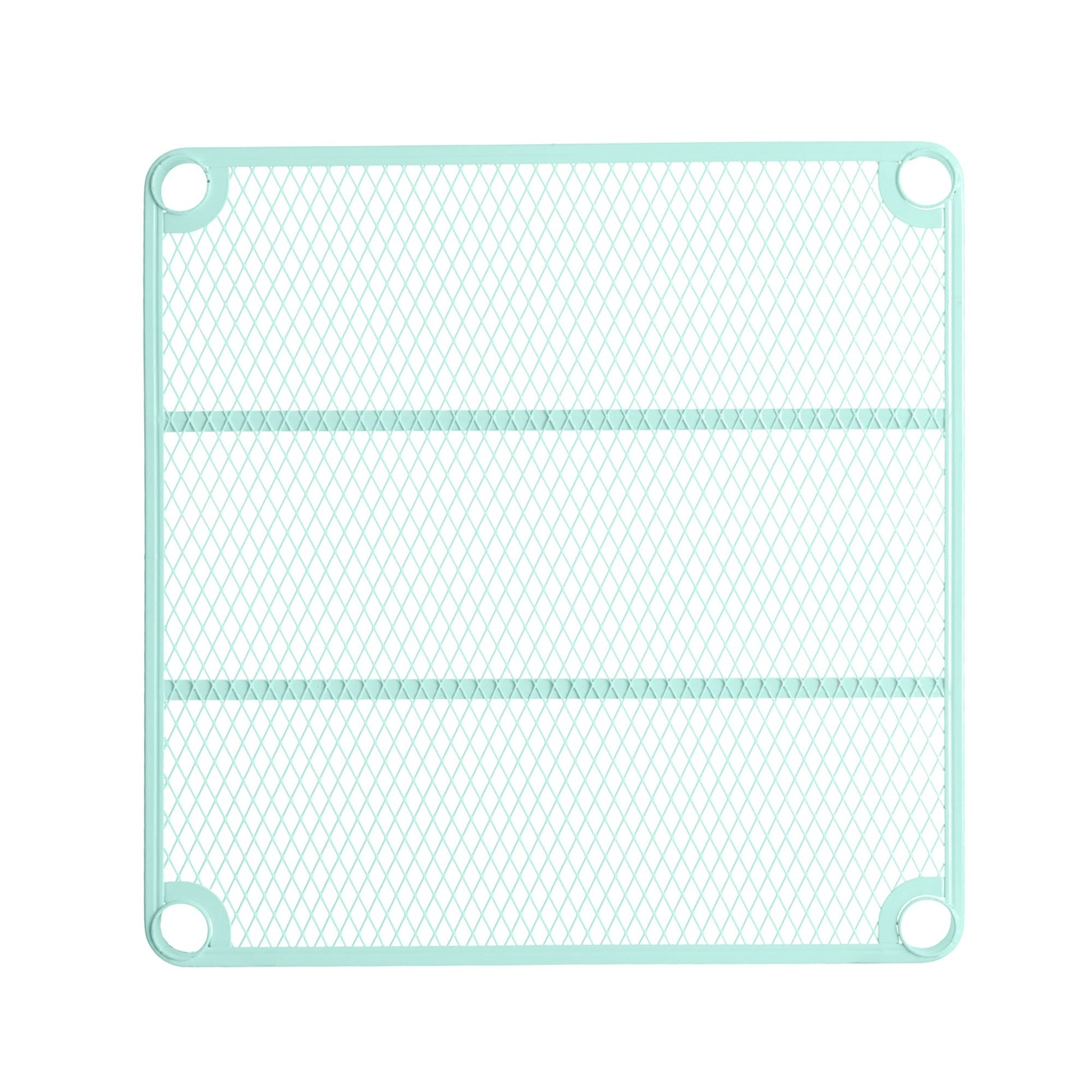 Featuring a heavy-duty steel metal mesh design and epoxy coating, each shelf from this standing shelf unit is capable of holding up to 440 pounds. With the expanded metal mesh shelving, this multipurpose display shelf rack will not let bottles, cans, or other small items fall through. The open design allows to you see your items from any angle, great for easy access. Use this shelving rack as a display for your favorite home decor, as storage for kids toys, and even for craft storage.