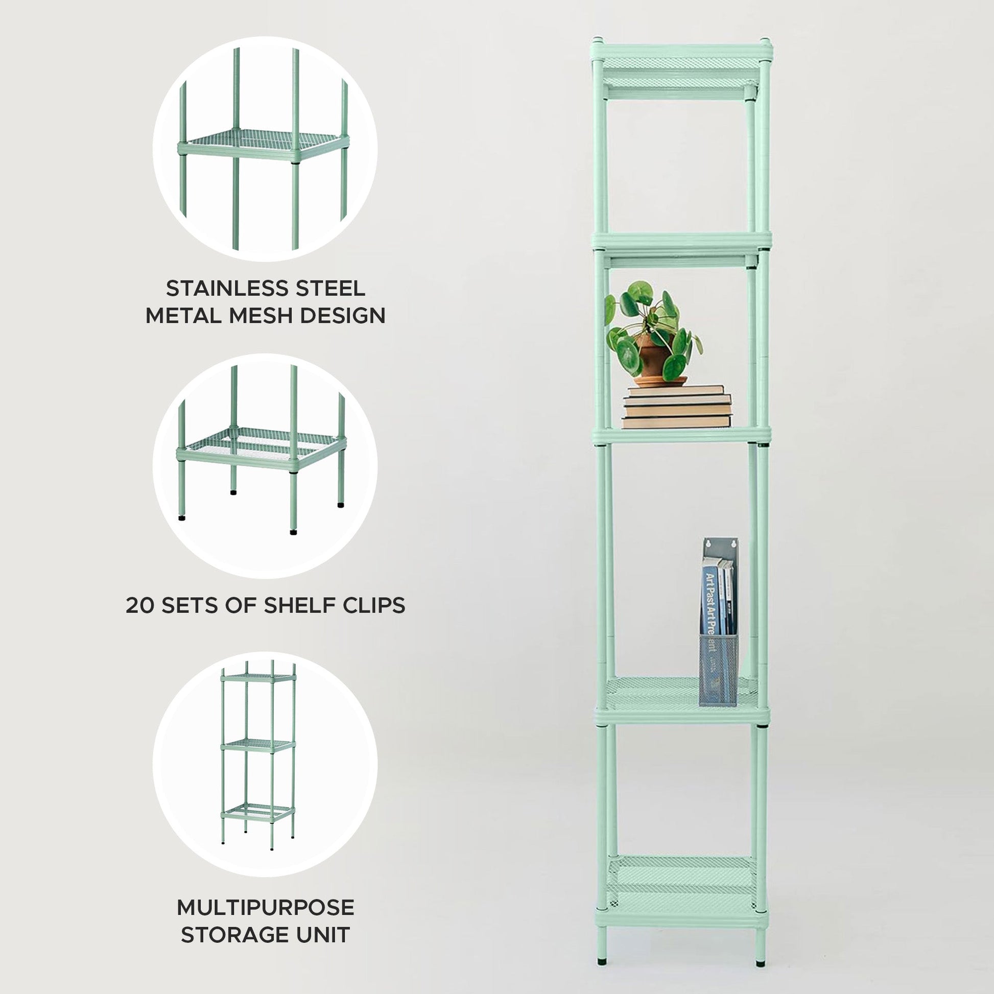 - Fulfill your organizational needs with the 5-tier shelf mesh storage unit tower; Perfect for your garage, kitchen, or office