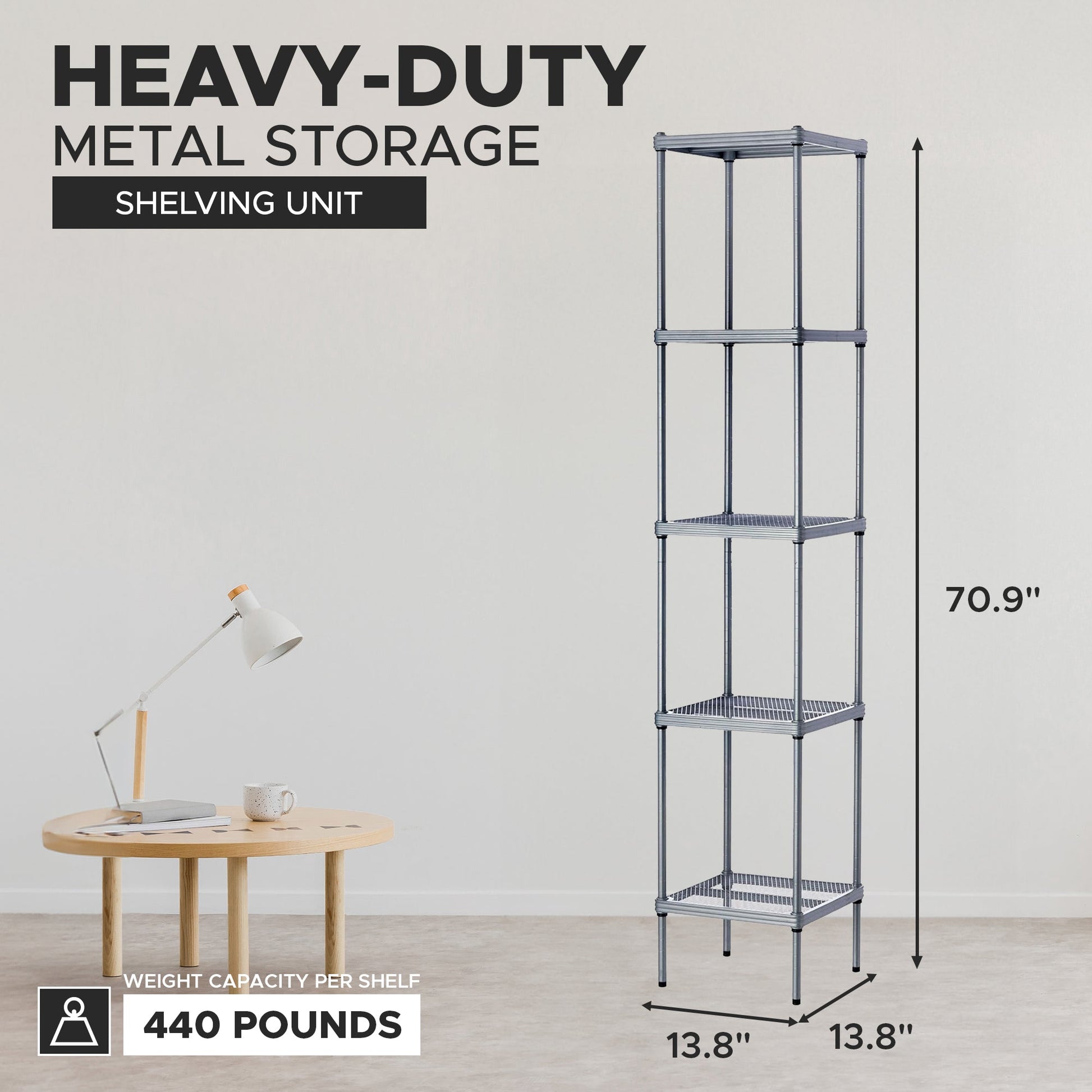 - Fulfill your organizational needs with the 5-tier shelf mesh storage unit tower; Perfect for your garage, kitchen, or office