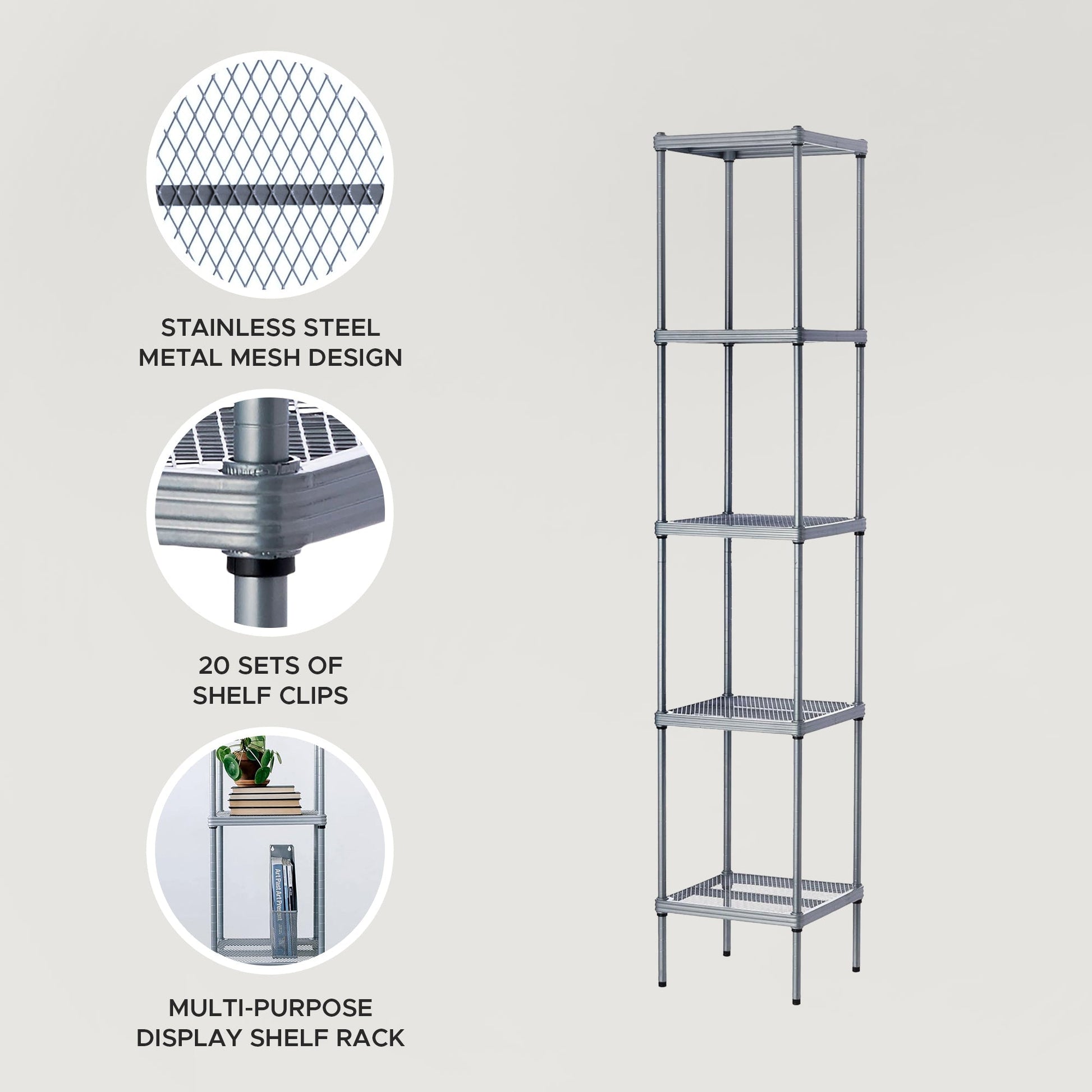 Design Ideas MeshWorks 5 Tier Tower Metal Storage Shelving Unit Rack, Silver