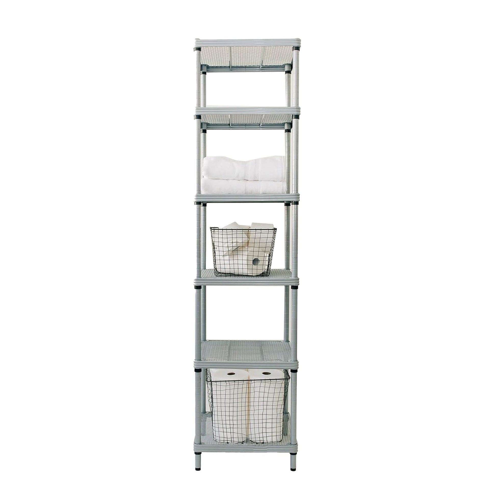 - Fulfill your organizational needs with the 6-tier shelf mesh storage unit tower; Perfect for your garage, kitchen, or office