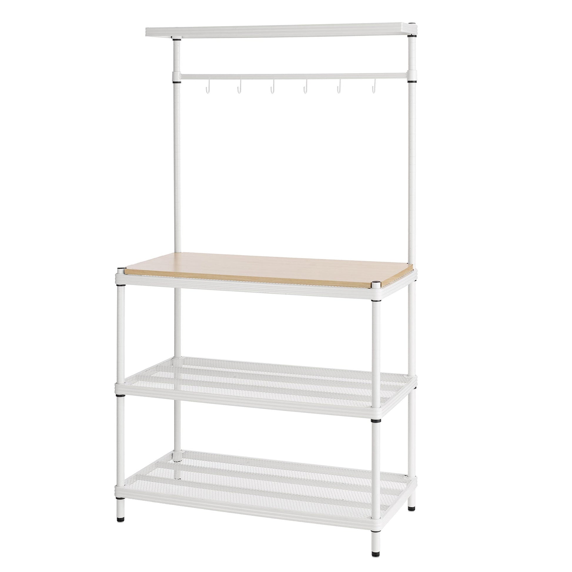 Design Ideas MeshWorks Metal Storage Utility Wood Top Shelving Unit Rack, White