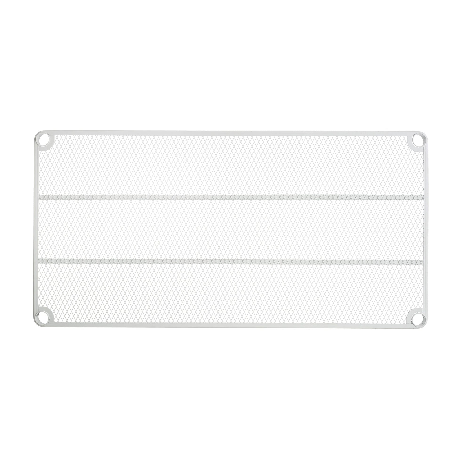 Featuring a heavy-duty steel metal mesh design and epoxy coating, each shelf from this standing shelf unit is capable of holding up to 440 pounds. With the expanded metal mesh shelving, this multipurpose display shelf rack will not let bottles, cans, or other small items fall through. This shelving rack for pantry storage gives you the ability to customize your space as you can add caster wheels (sold separately) giving you your own unique storage freedom.