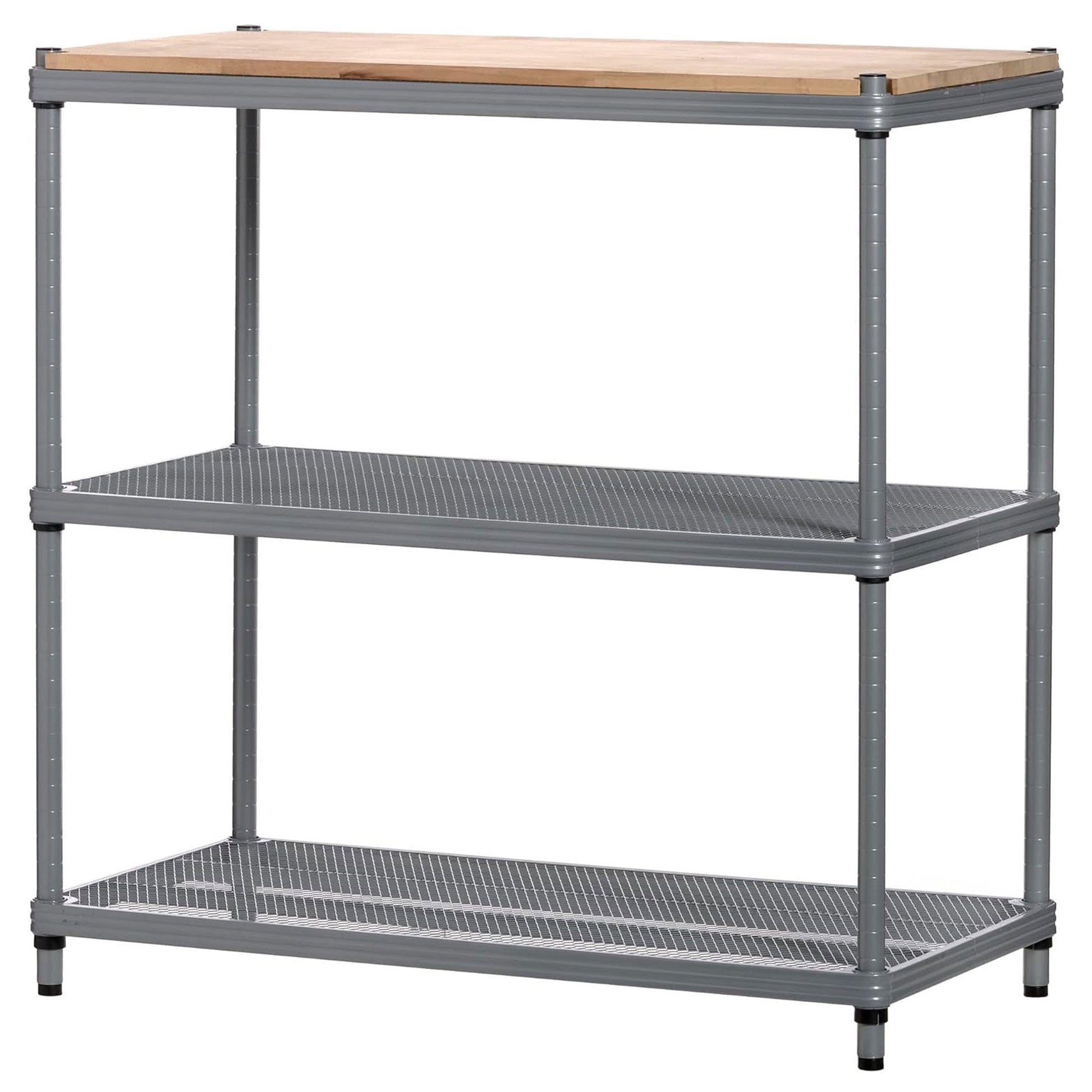 Design Ideas MeshWorks Metal Storage Wood Top Workbench Shelving Unit, Silver