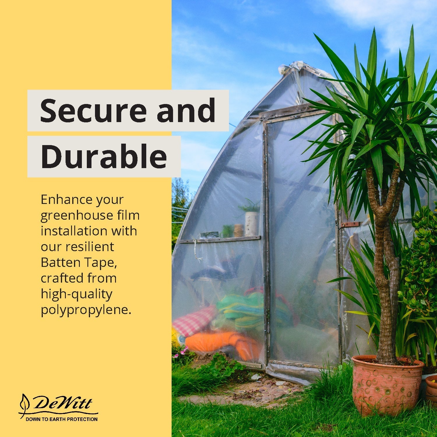 Greenhouses are great structures for extending the lives of plants and for cultivating crops in harsh conditions. But keeping the plastic covers on greenhouses can be tricky with the elements. A solution to that problem is the DeWitt 100-Yard x 2.75-Inch Greenhouse Batten Tape.