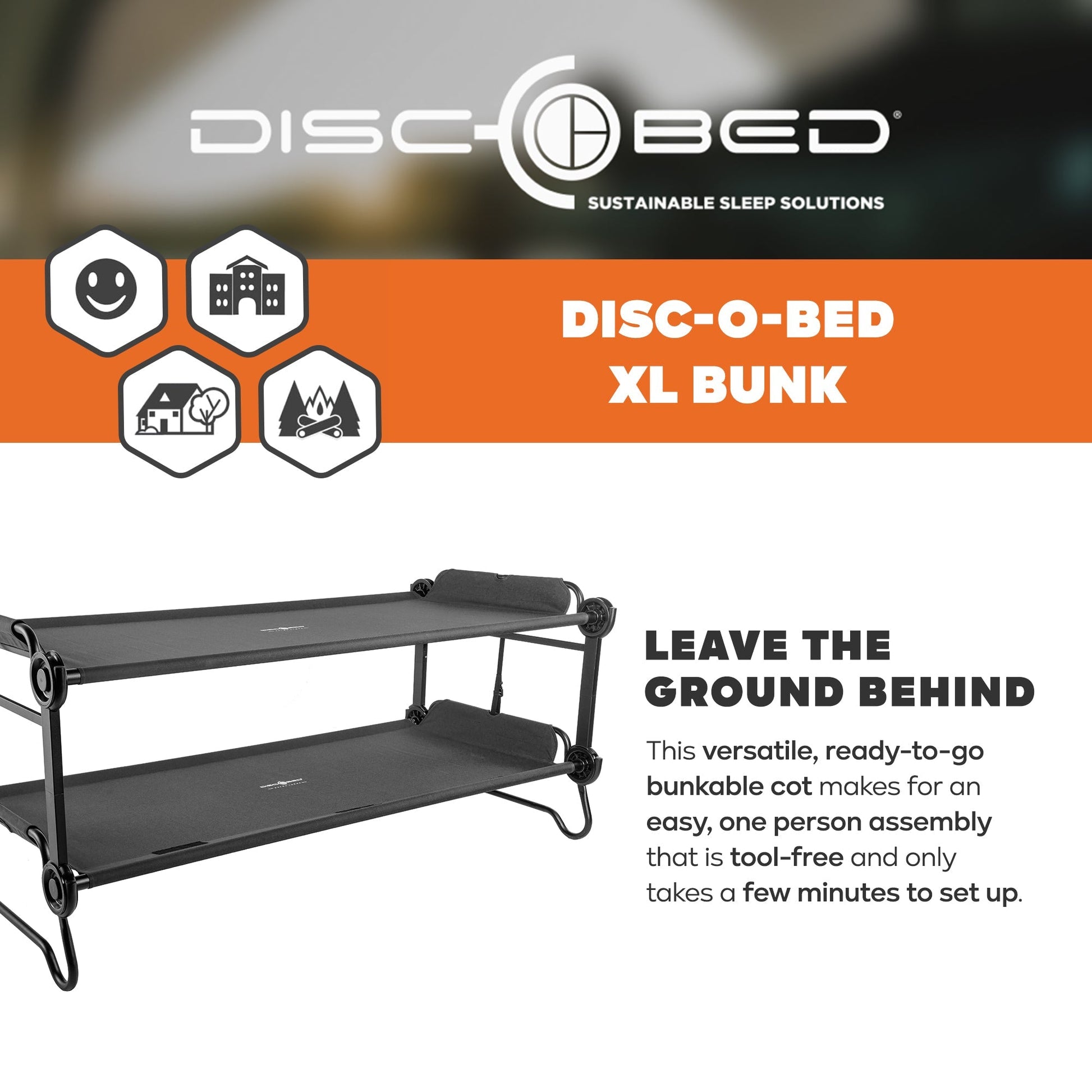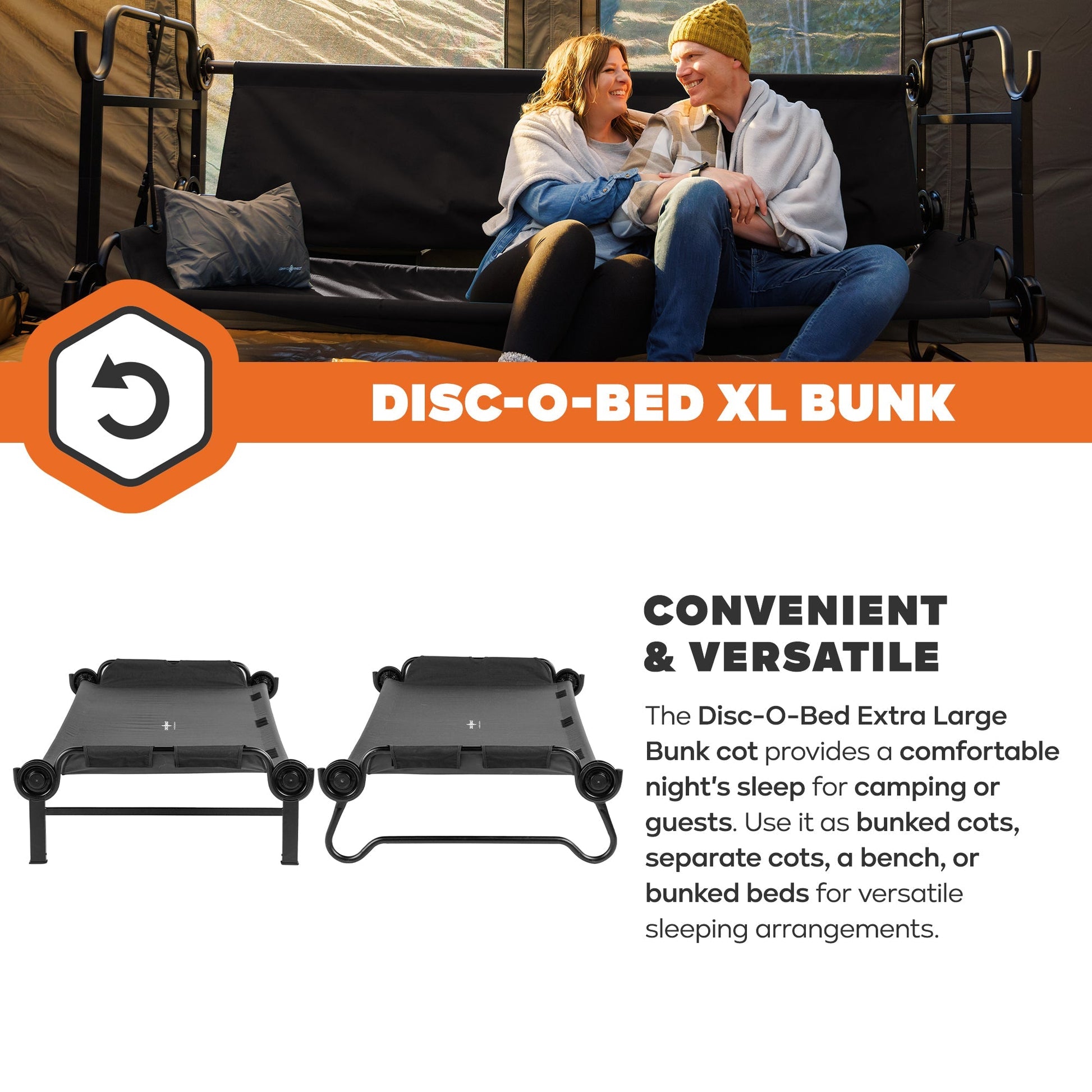 The Disc-O-Bed Extra Large Bunk is designed to deliver dependable comfort and versatility whether you're outdoors at a campsite or indoors hosting overnight guests. Built to maximize space and provide durable support, this stackable sleeping system features a patented disc assembly that allows you to easily convert it into two separate cots, a bench, or bunked beds without the need for tools. Its clever modular design and compact carry bags make it ideal for travel, cabin stays, or emergency setups.