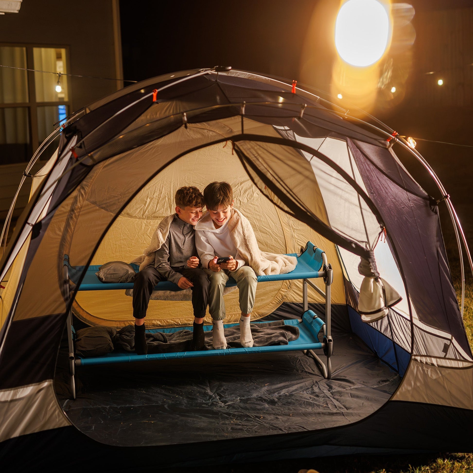 - Compact and comfortable Discobed bunked cots for kids’ camping