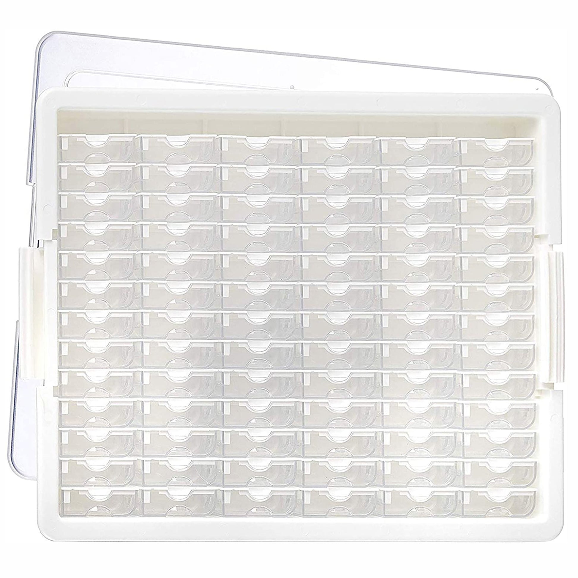 These bead storage trays come with lids, 2 sheets of labels, and containers in assorted sizes to accommodate different craft supplies. The trays feature 78 tiny containers that you can label and organize to support your workflow. The bead organizer boxes help keep your workspace neat and clean. The clear, snap-shut lids make it easy for you to see all of your beads and supplies without having to open the boxes. You can stack the organizer trays for easy storage. Take them with you to craft shows, studios, and more to continue working on your projects. The bead organizer trays are perfect for storing seed beads, crystals, findings, small spacers, and diamond painting supplies.