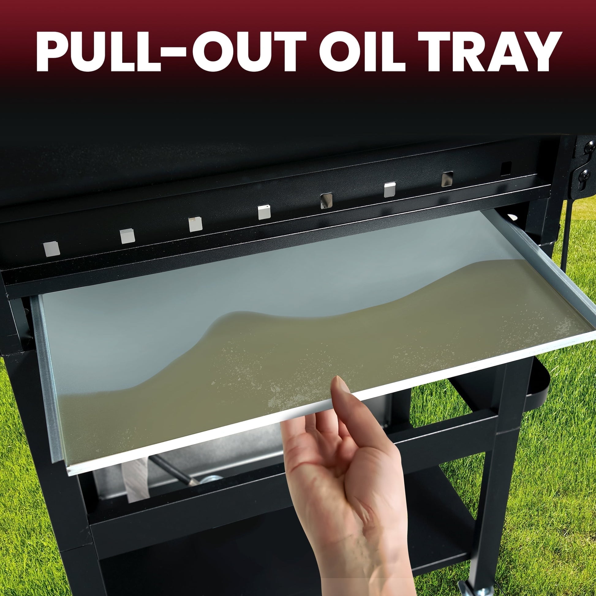 2. Multifunctional & Extra-Large Cooking Area,267sq.in grilling area + 67sq.in warming area.