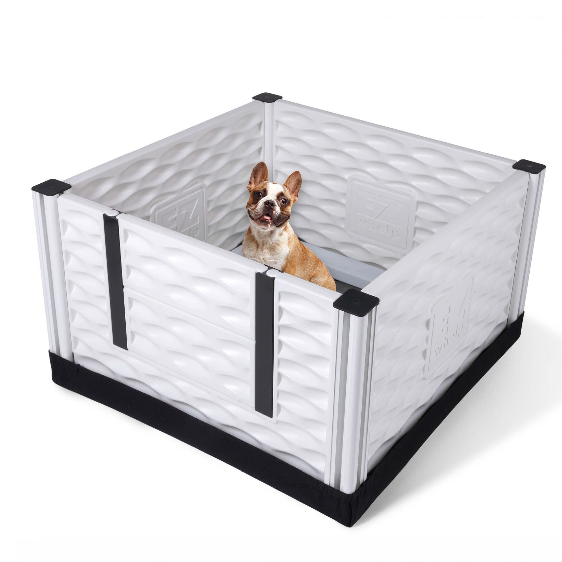 Our dog whelping box is lined with a soft, absorbent machine-washable canvas lining and comes with a reusable pet pee pad. To clean the gate, simply wash it using detergents or bleach. More than just a birthing box for dogs, the EZclassic can also be used as a pet playpen or indoor dog enclosure or dog pen. The box is even a reusable home for future litters. It’s available in 3 sizes to accommodate all dog breeds: 28" x 28", 38" x 38", and 48" x 48".