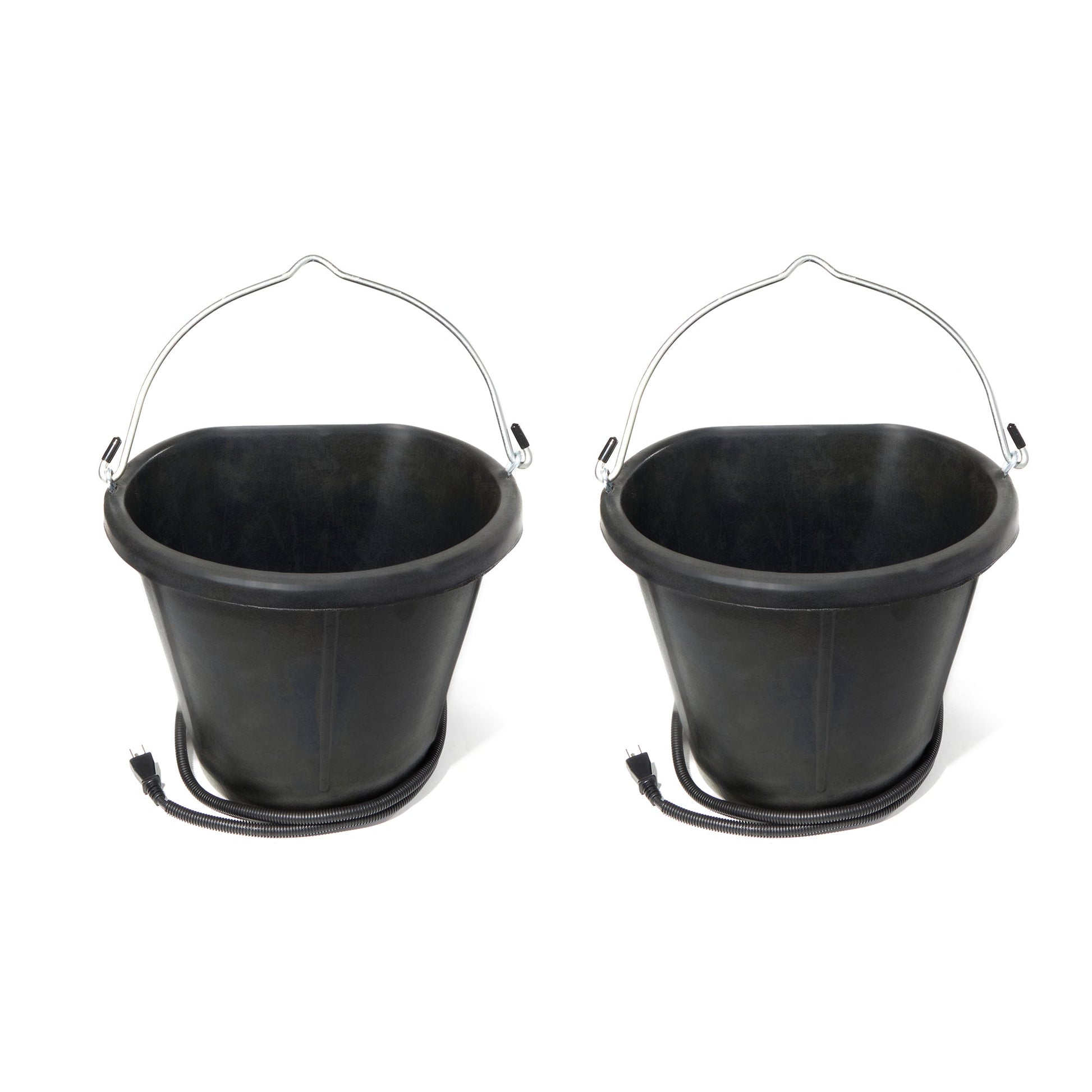 Farm Innovators 18 Qt Rubber Flat Back Heated Bucket w/ Guard, 90 Watt (2 Pack)