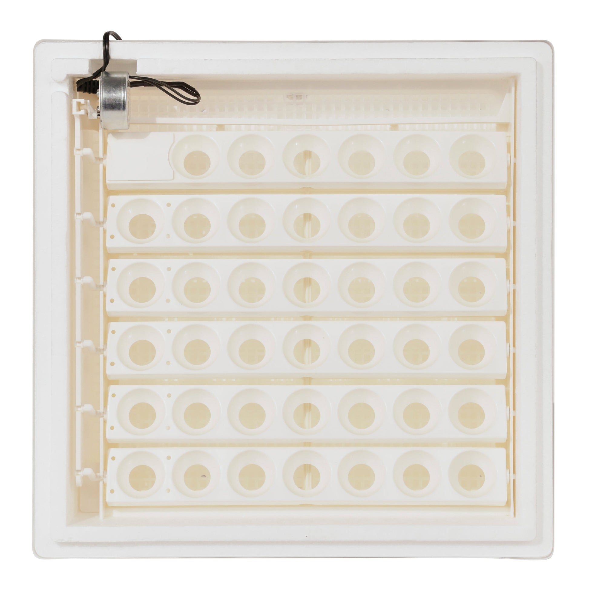 - Automatic egg turner eliminates manual handling for up to 41 eggs; deep bottom tray to accommodate even large duck & goose eggs