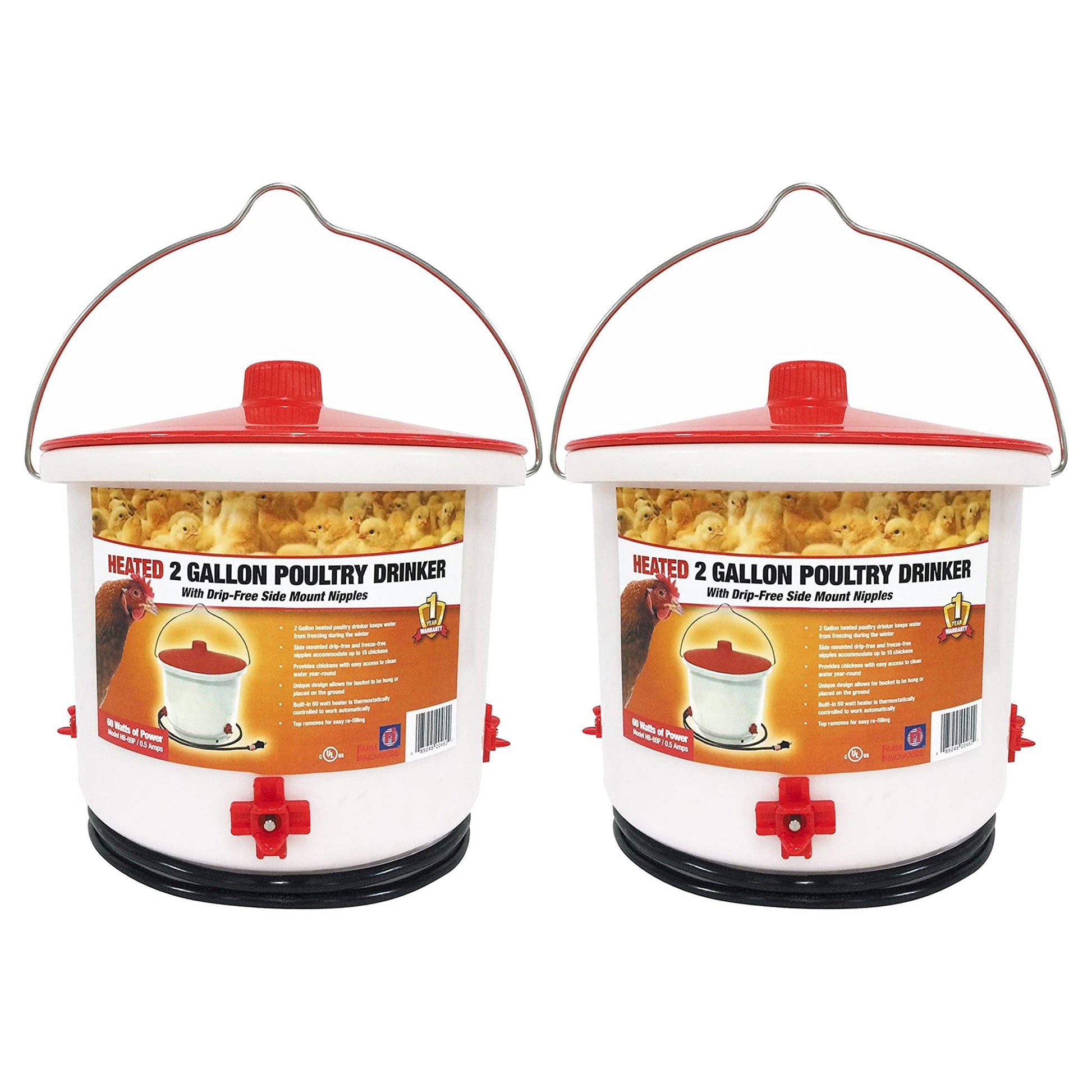 Farm Innovators Heated 2 Gallon Poultry Water Bucket Drinker, White/Red (2 Pack)