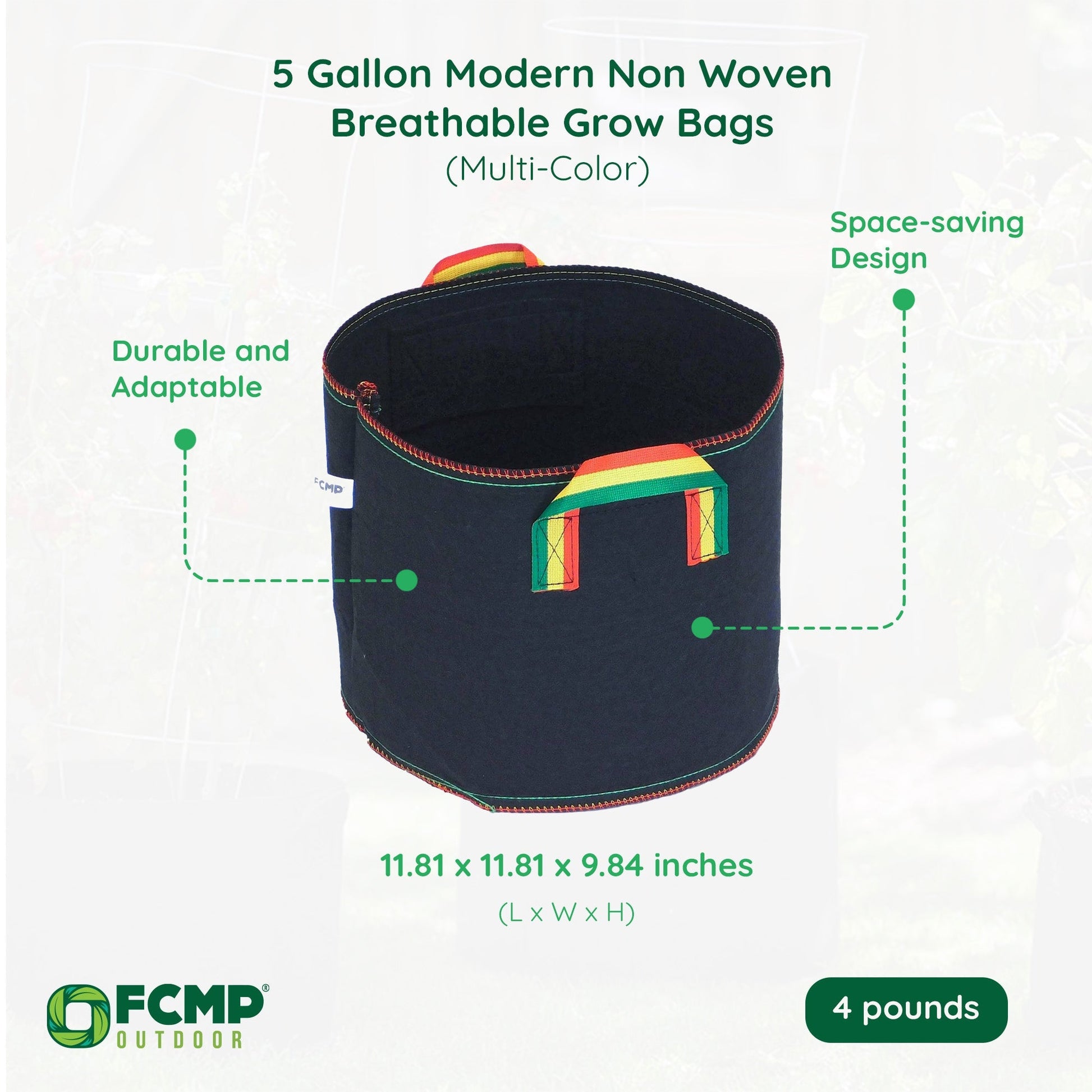FCMP Outdoor 5 Gal Modern Non Woven Breathable Grow Bags, Multicolor (5 Pack)