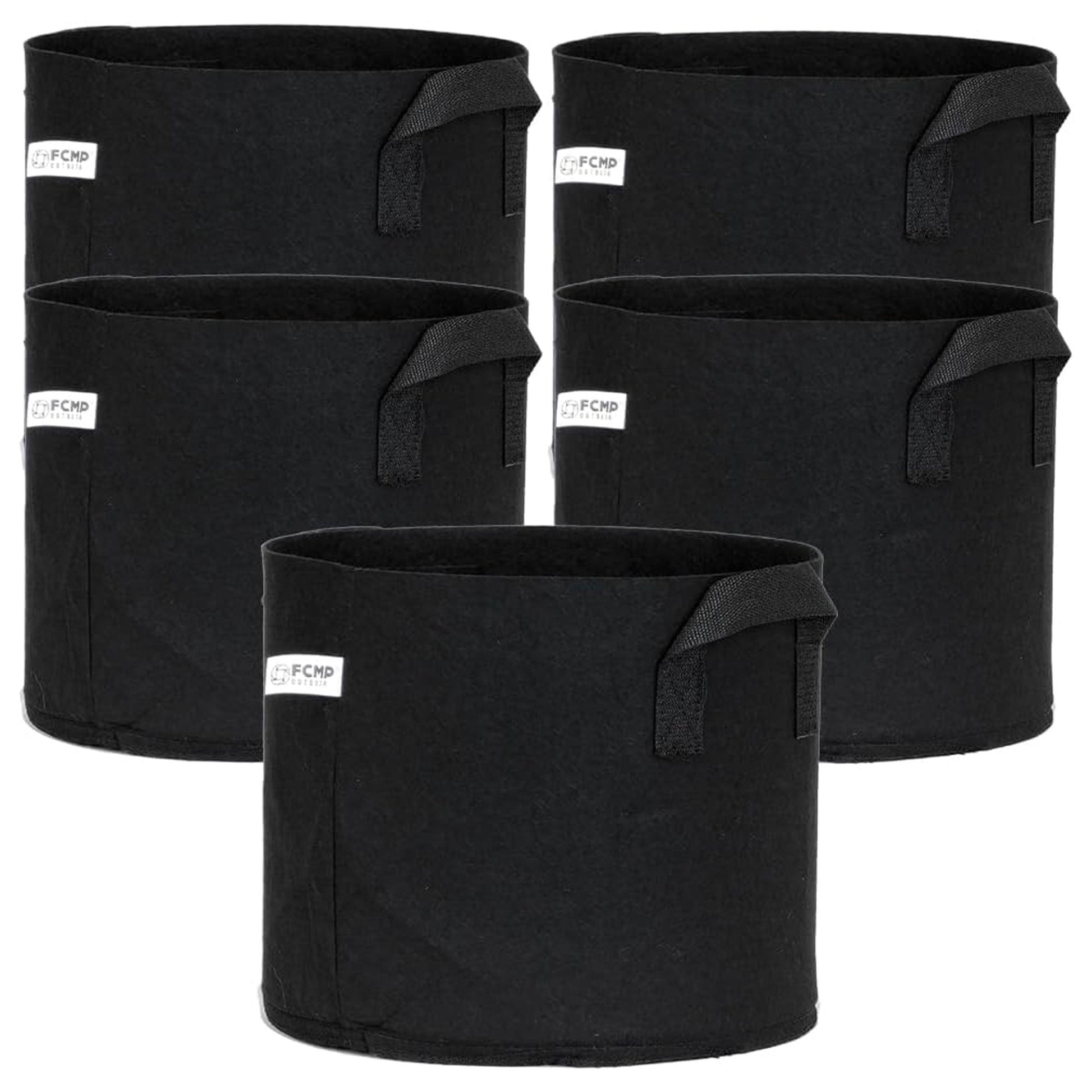 FCMP Outdoor 5 Gallon Modern Non Woven Breathable Grow Bags, Black (5 Pack)