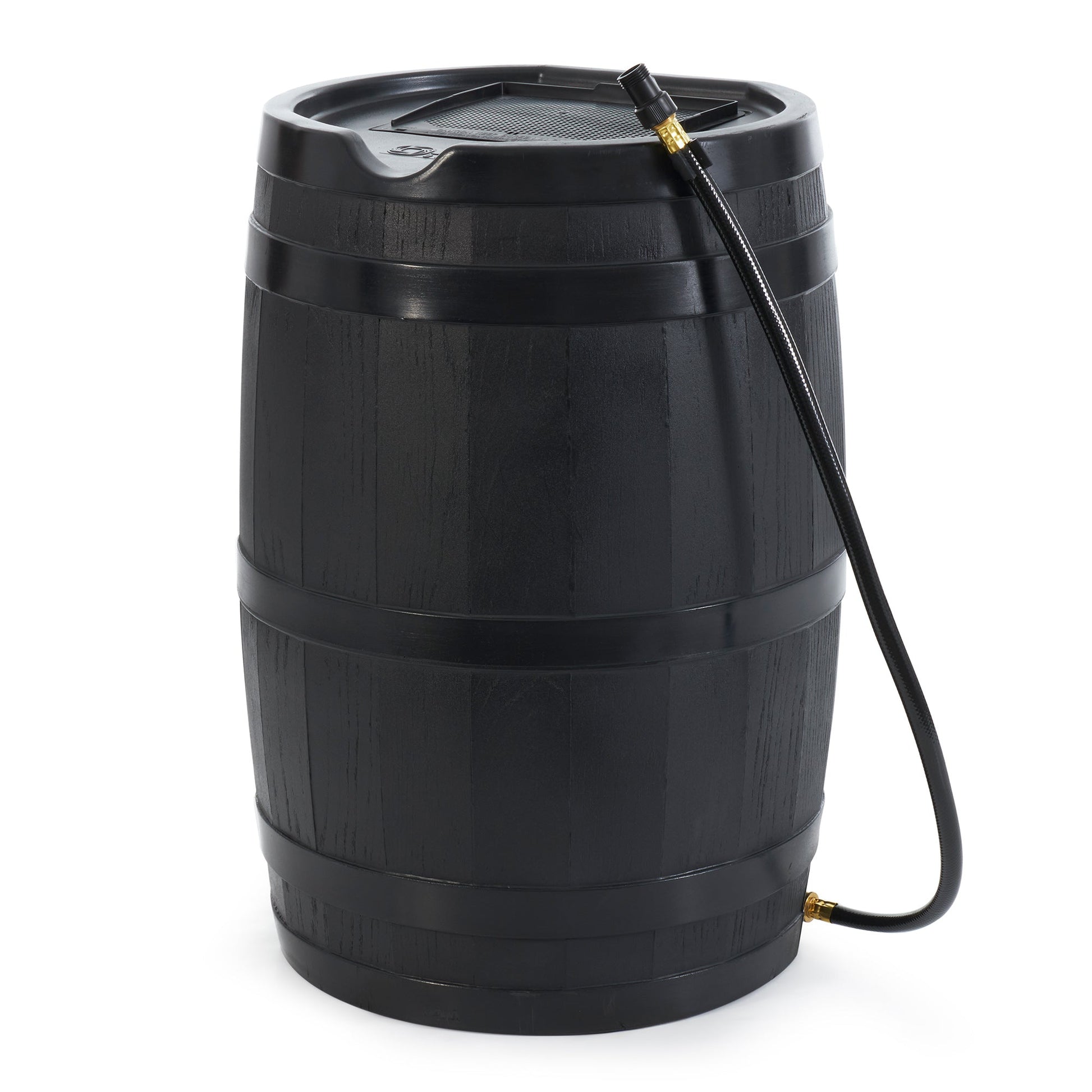 With a fixed lid, the opening of the barrel is small enough to prevent children or pets from entering the barrel. The 3.5-foot garden hose with shut-off valve can be used for filling watering cans or can be attached to longer garden hoses bringing water further into your garden, yard, or landscape.