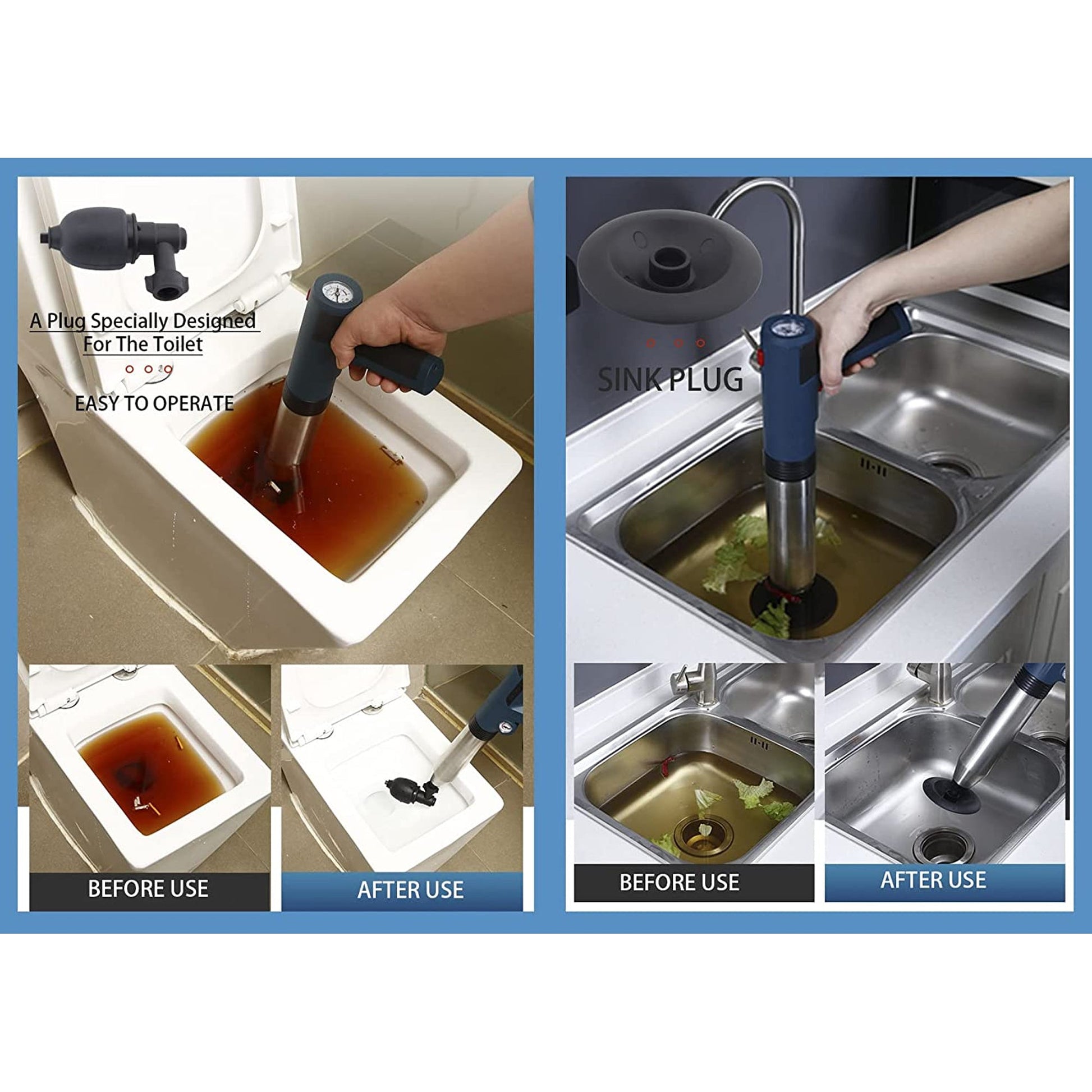 This powerful drain blaster tool uses the power of high-pressure compressed air to blast away the toughest clogs quickly and easily. Specifically designed to solve the blockage of household pipes, you'll love having this device on hand when a clog occurs. Easy to operate with 1-click charging and 1-click release of pressure, this innovative unclogging tool requires less manual labor than standard tools like plungers, augers, and snakes.