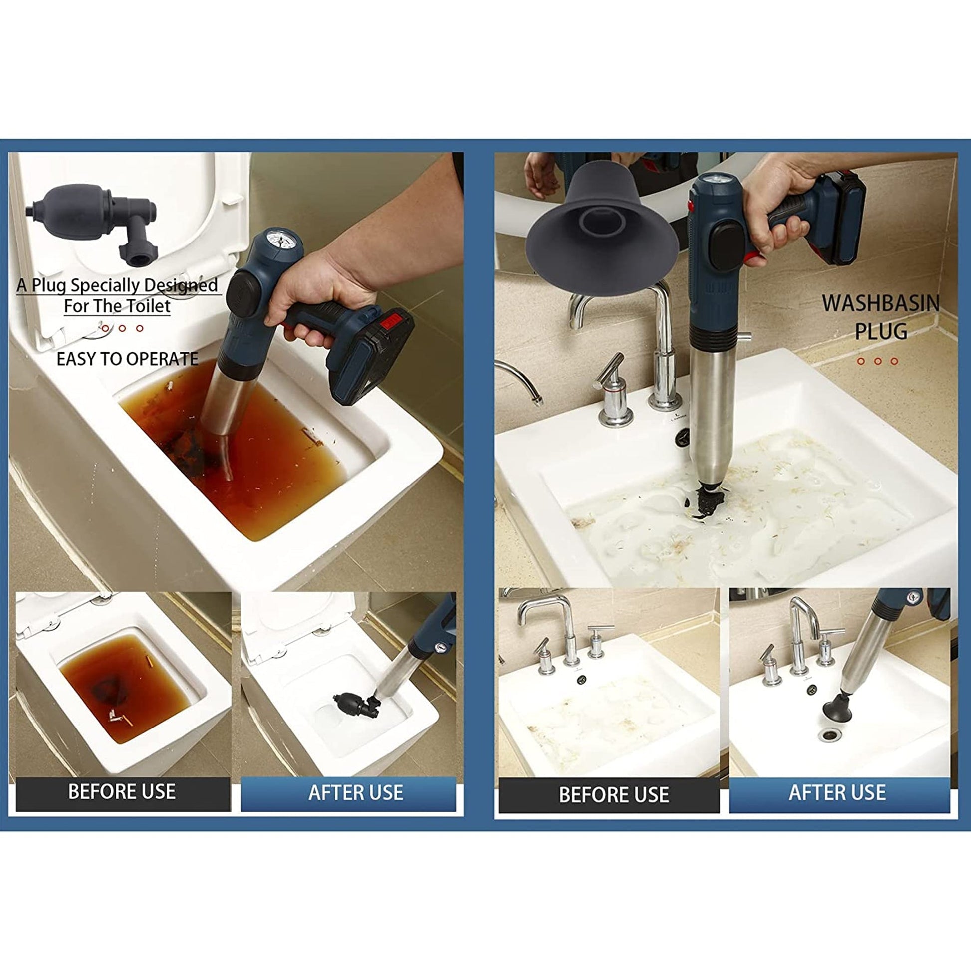 - Easy to operate with 1-click charging and 1-click release of pressure while requiring less physical energy than plungers or snakes; Simple 4-step process to unclog your pipes