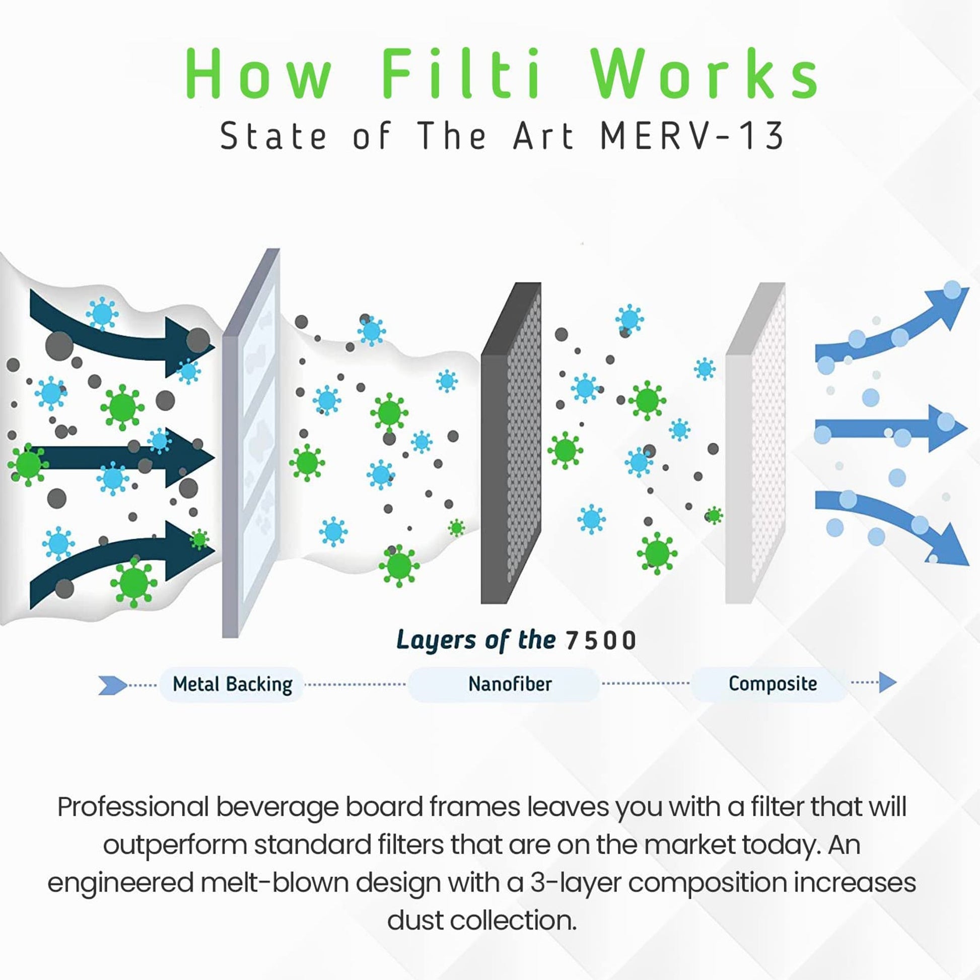Filti 7500 Pleated Home HVAC Furnace 20 x 25 x 5 MERV 13 Air Filter (2 Pack)