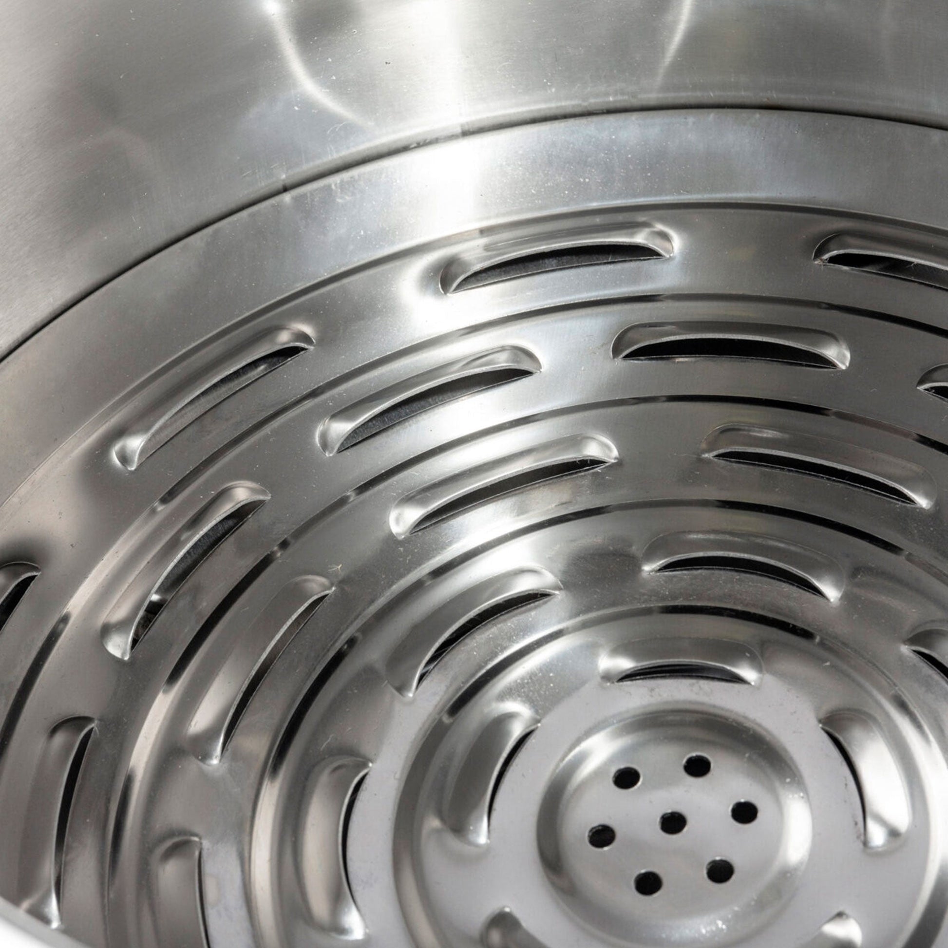 - Made of 304 stainless steel and a 430 thicker stainless steel base to ensure stability and longevity of the pit