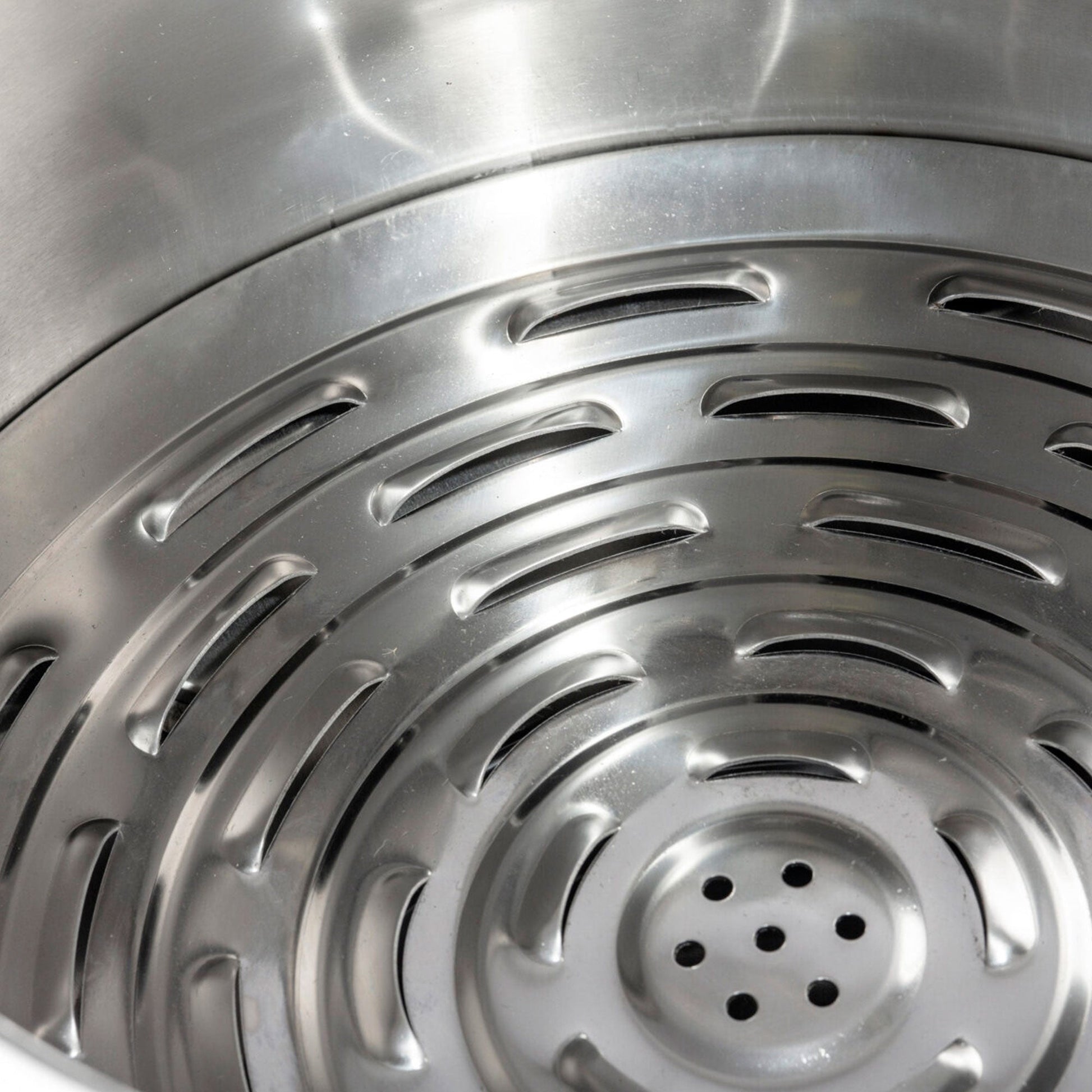 - Made of 304 stainless steel and a 430 thicker stainless steel base to ensure stability and longevity of the pit