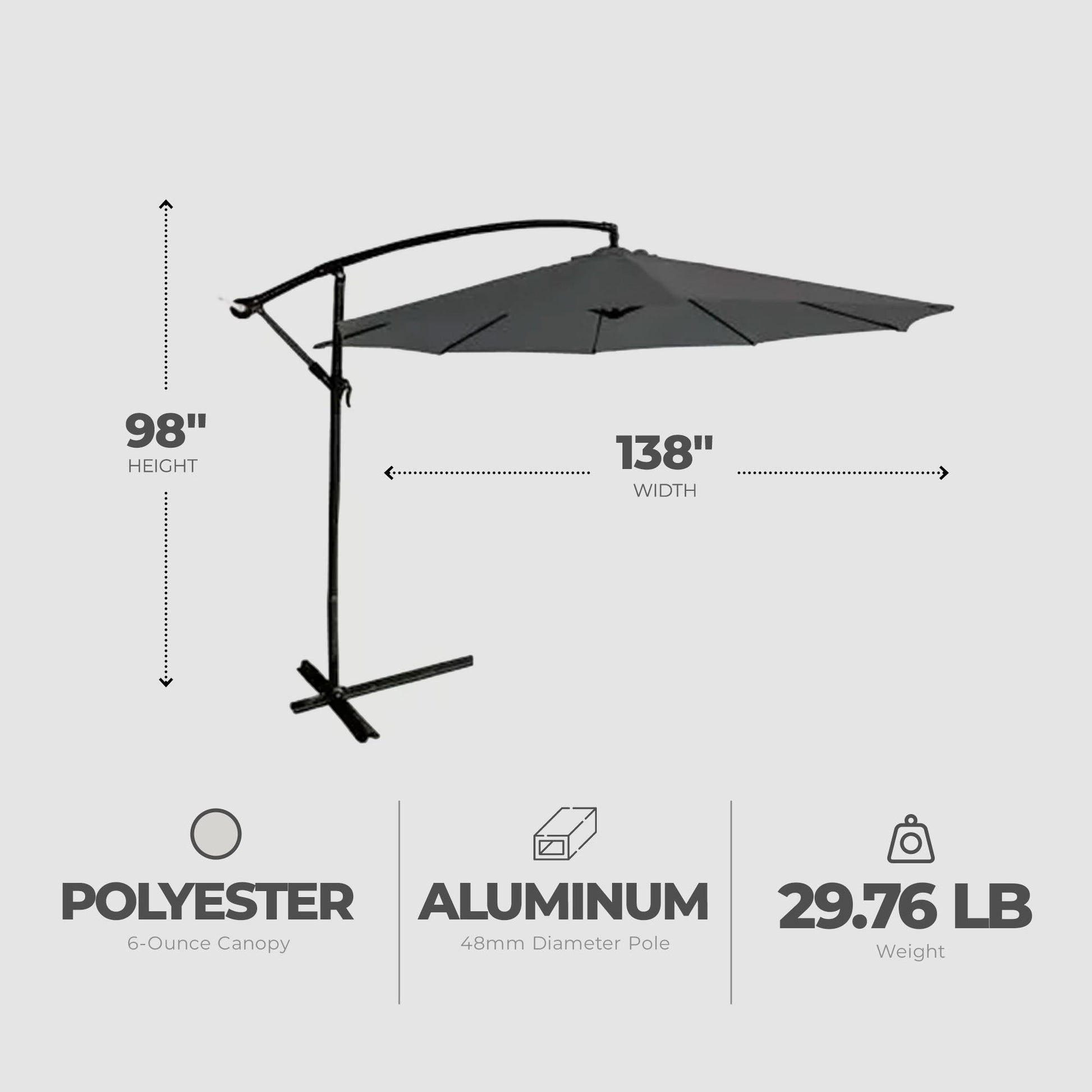 - Charcoal gray hue of the umbrella complements various outdoor decors, adding a modern touch to your al-fresco experience