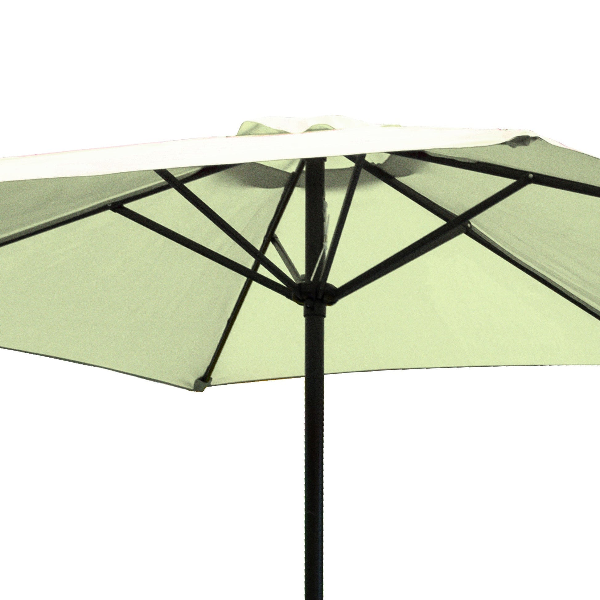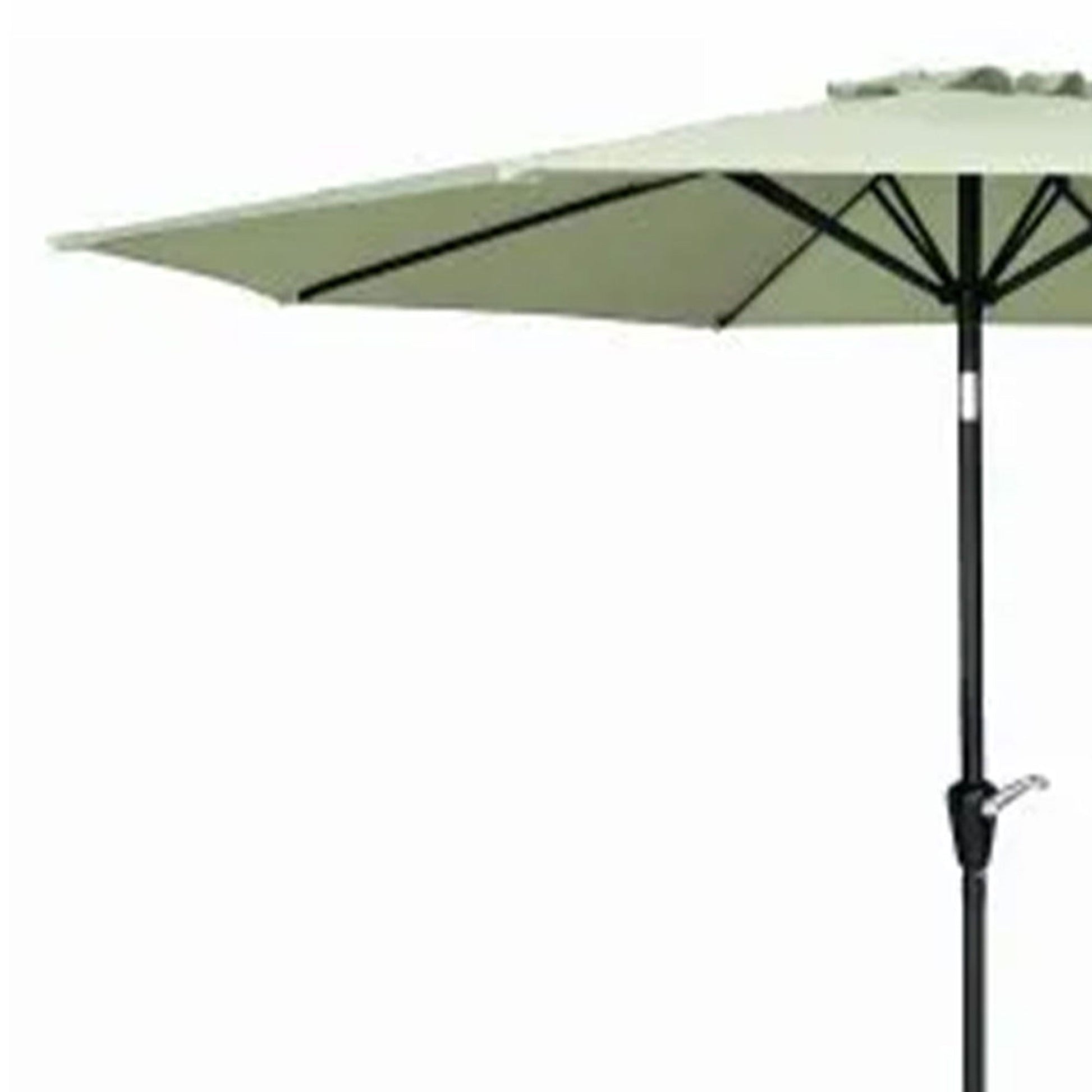This 9-foot umbrella offers you and your guests great sun coverage while sitting around your patio table, at the beach, or having a backyard picnic. Designed with polyester fabric, the large umbrella stands up to all weather conditions and is great for all-season use. This elegant and versatile umbrella is designed to complement your patio ensemble seamlessly, featuring a stylish seafoam green that effortlessly matches your table and chairs. Please note that the table, chairs, and umbrella base are not included. The pool umbrella is e-coated for rust protection, ensuring long-lasting use and maintaining its aesthetic appeal even in various weather conditions.