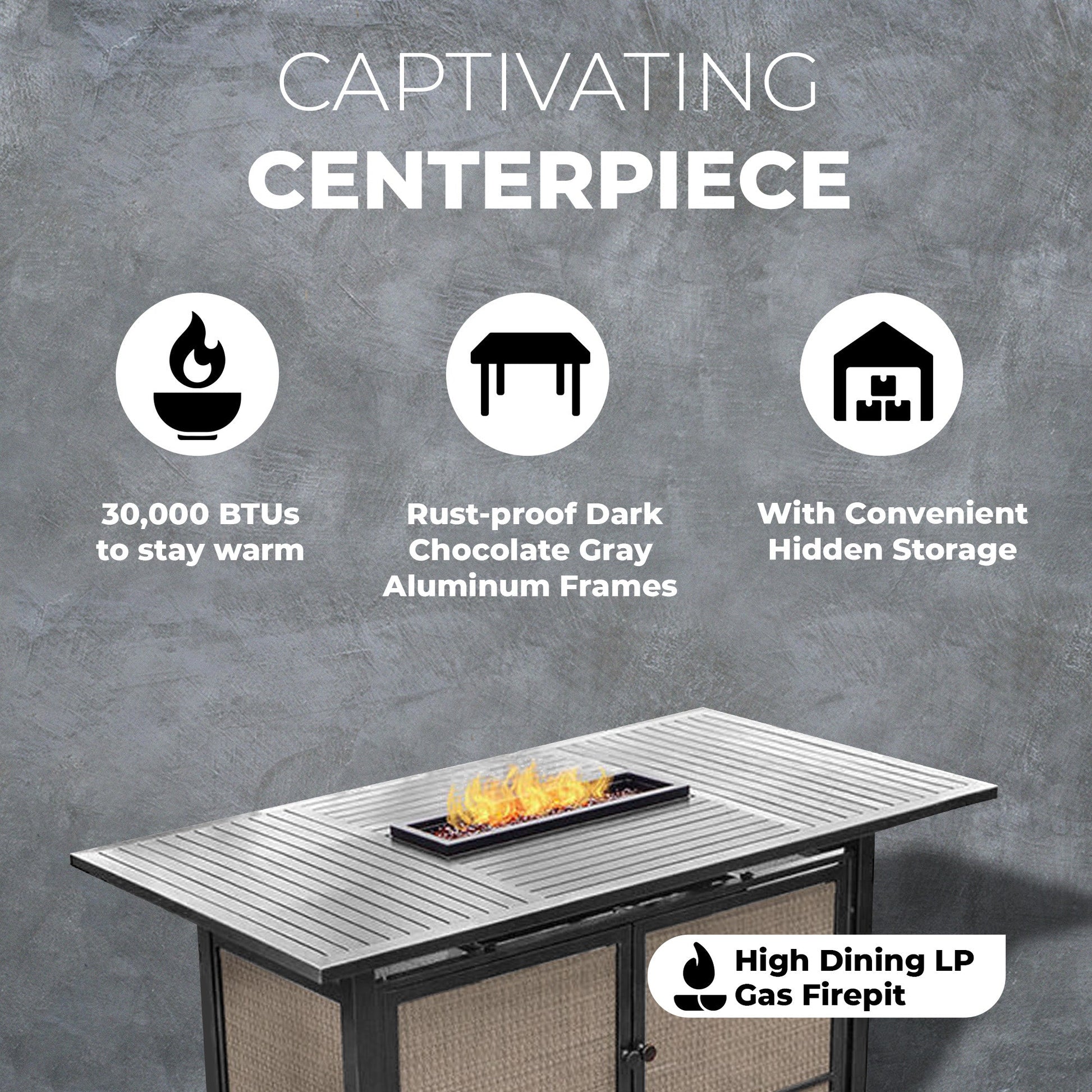 - Experience outdoor dining in style with the High Dining LP Gas Firepit, where sophistication meets functionality