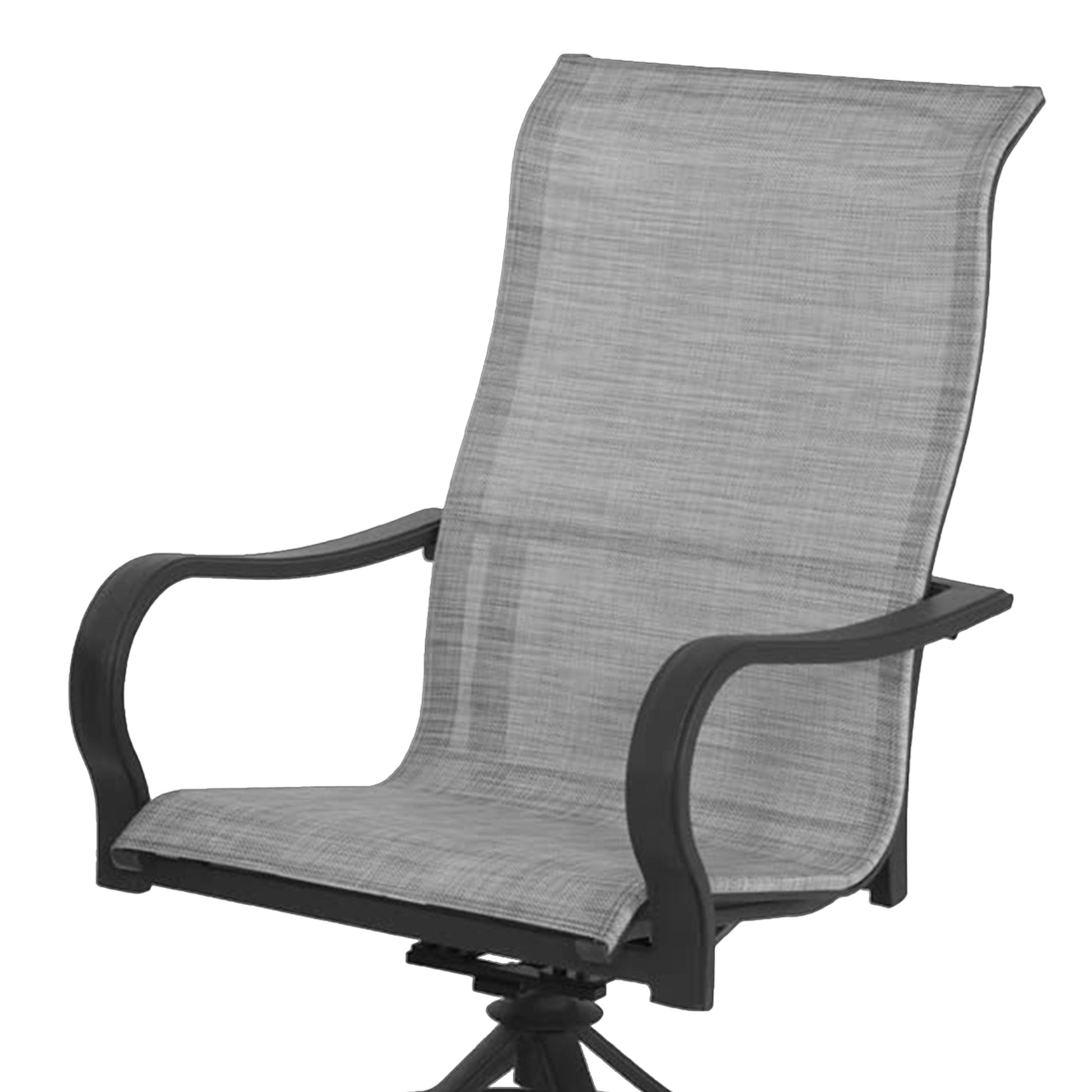 - Furniture set featuring swivel rockers with a sophisticated dark gray finish, coupled with a light gray sling for an impeccable outdoor aesthetic