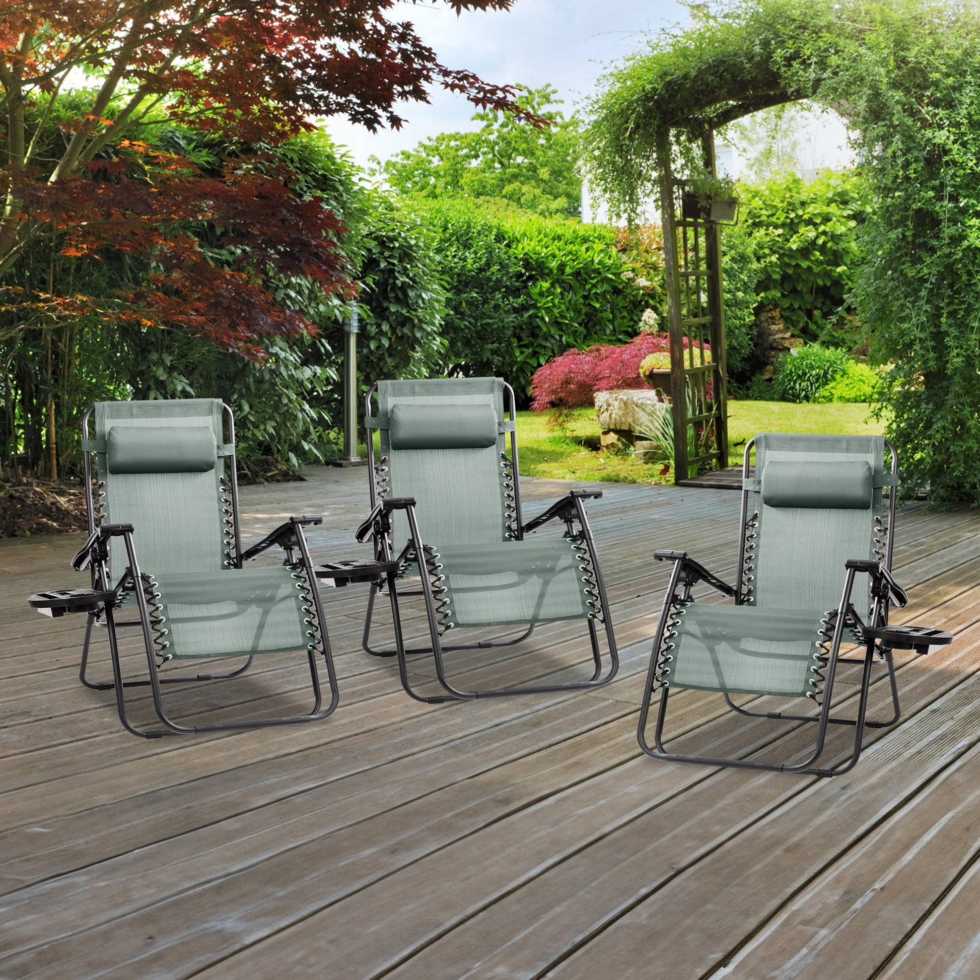 Four Seasons Courtyard Sunny Isles XL Steel Zero Gravity Chair, Green (3 Pack)
