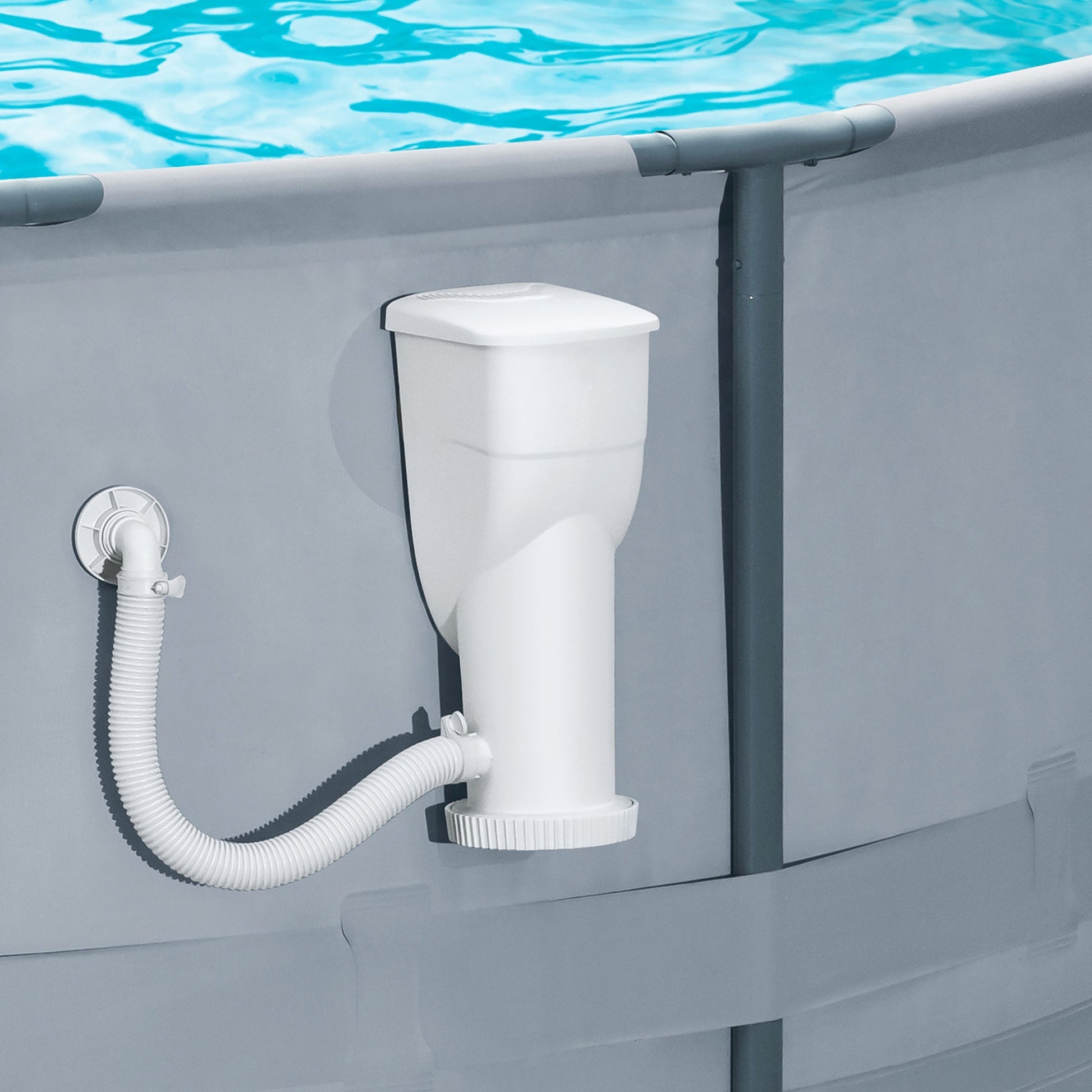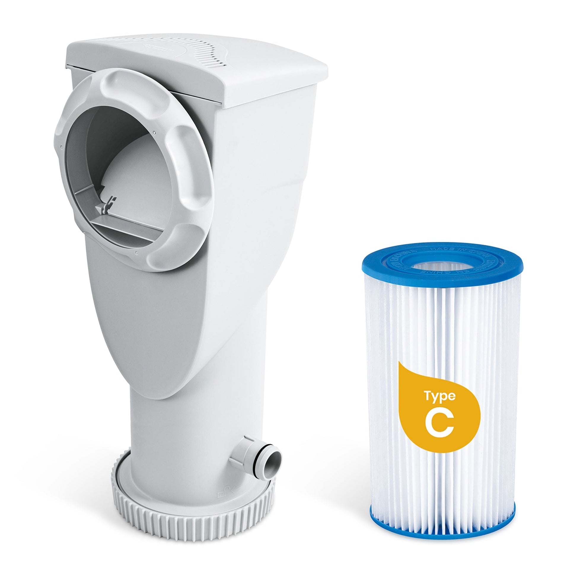- Multi-function 2-in-1 filter pump and skimmer keeps pool water clean and clear for an ideal convenient accessory
