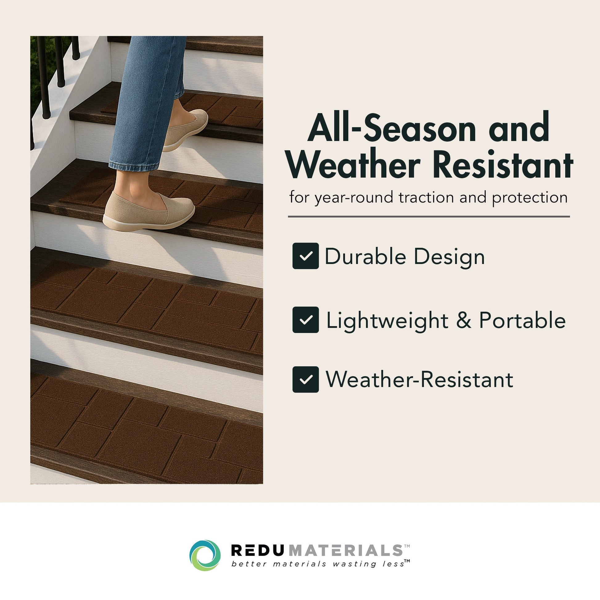 Recycled rubber stepping treads are easy to install, require no maintenance, and look natural. They're perfect for creating enchanting stairs, walkways, or paths in gardens and backyards. The rubber surface is impact absorbing and protects shoes from dirt, even in wet and muddy areas, and the raised textured design provides traction for stability. They are protected in all weather, durable, lightweight, and easy to clean, which means there is no need to swap out these stepping mats during the winter months.