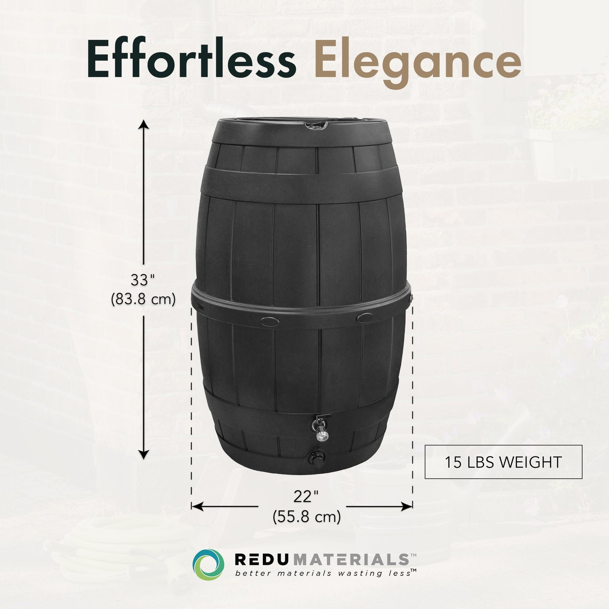 - Made from recycled plastic, this rain barrel not only reduces waste from landfills but also withstands outdoor elements for long-lasting use